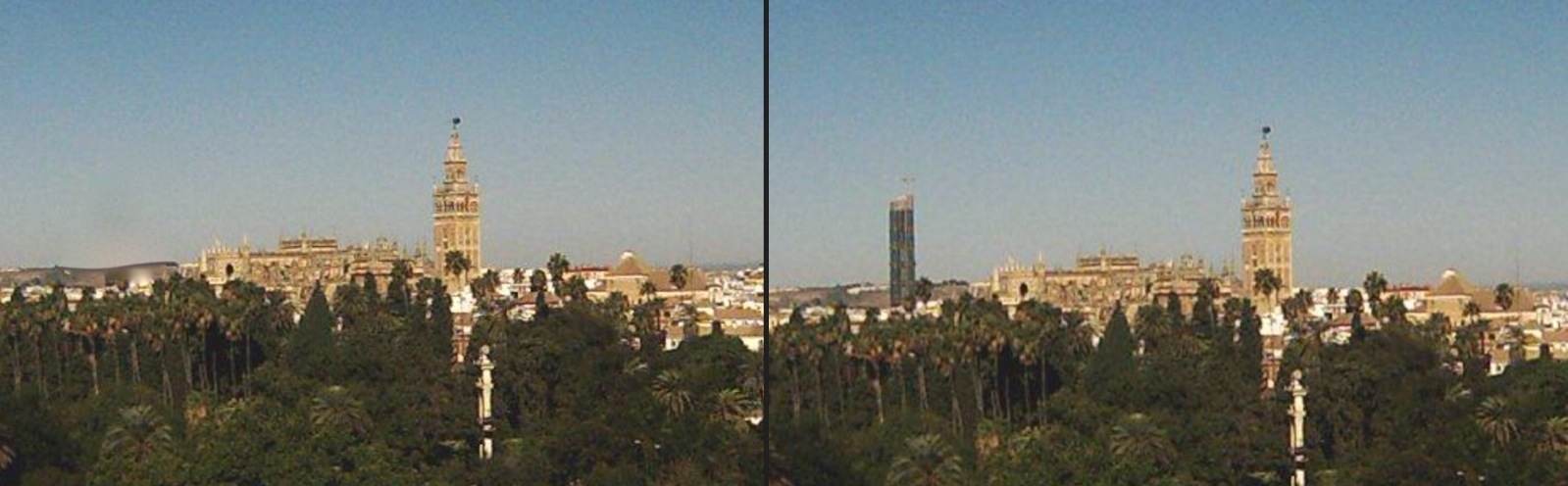 Sur photo, il n’y pas photo : c’est un massacre, comme la tour Pelli de 180 mètres qui est en train de s’ériger à Séville, ruinant la visibilité de la Giralda, le minaret-clocher de la cathédrale aussi classé à l’UNESCO et emblème de l’Andalousie.