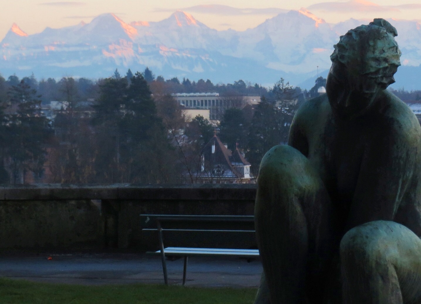 De l’esplanade du Palais fédéral, ce dimanche-là de décembre, les trois « Bernoises », l’Eiger, le Mönch et la Jungfrau trônaient plein sud, royalement majestueuses, confédérant les regards.