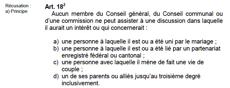 Un élu politique doit faire de même, en particulier en sa qualité de membre de commission. Ici, l’exemple du règlement communal de La Chaux-de-Fonds