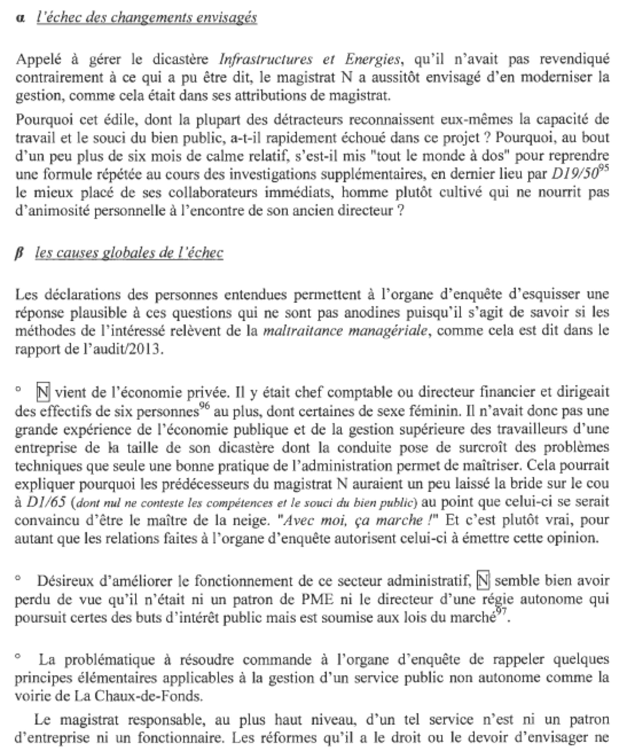 Voici d’abord des extraits du rapport sur les méthodes de management inapproprié de l’élu UDC :