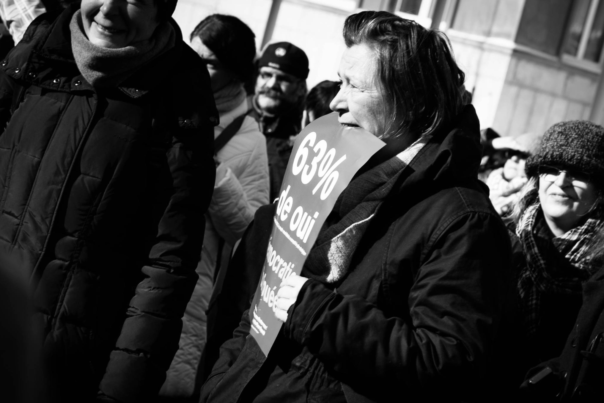 Ce samedi matin gorgé de lumière, les armes de 3500 citoyens furent un défilé – debout, toutes générations confondues, sans coloration politique partisane, des slogans sur l’une ou l’autre pelle (la pelle du 7 février) qui transmuaient la colère légitime en mots forts et inventifs, dénués de toutes attaque ad personam.