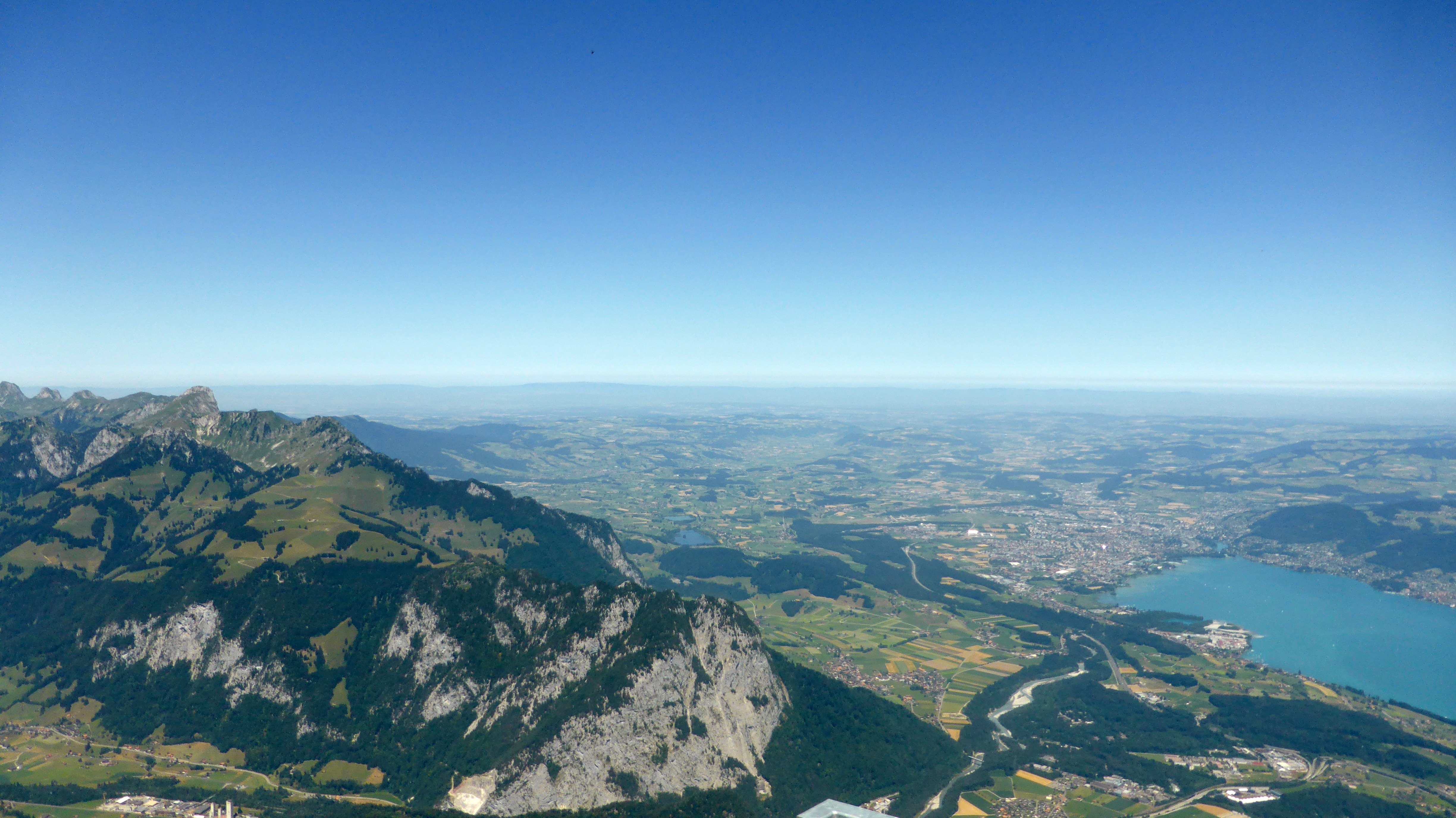 Le paysage qu’on connaît morcelé (la chaîne du Jura, la plaine de l’Aar, le lac de Thoune, les Alpes bernoises, la vallée de Kandersteg, les Préalpes vaudoises) se révèle dans sa continuité. Une totalité dont il faut être à l’affût les quelques jours par année où le ciel sera limpide, la brise légère et la température douce. Comme ce jour-là de début juillet, à l’improviste …