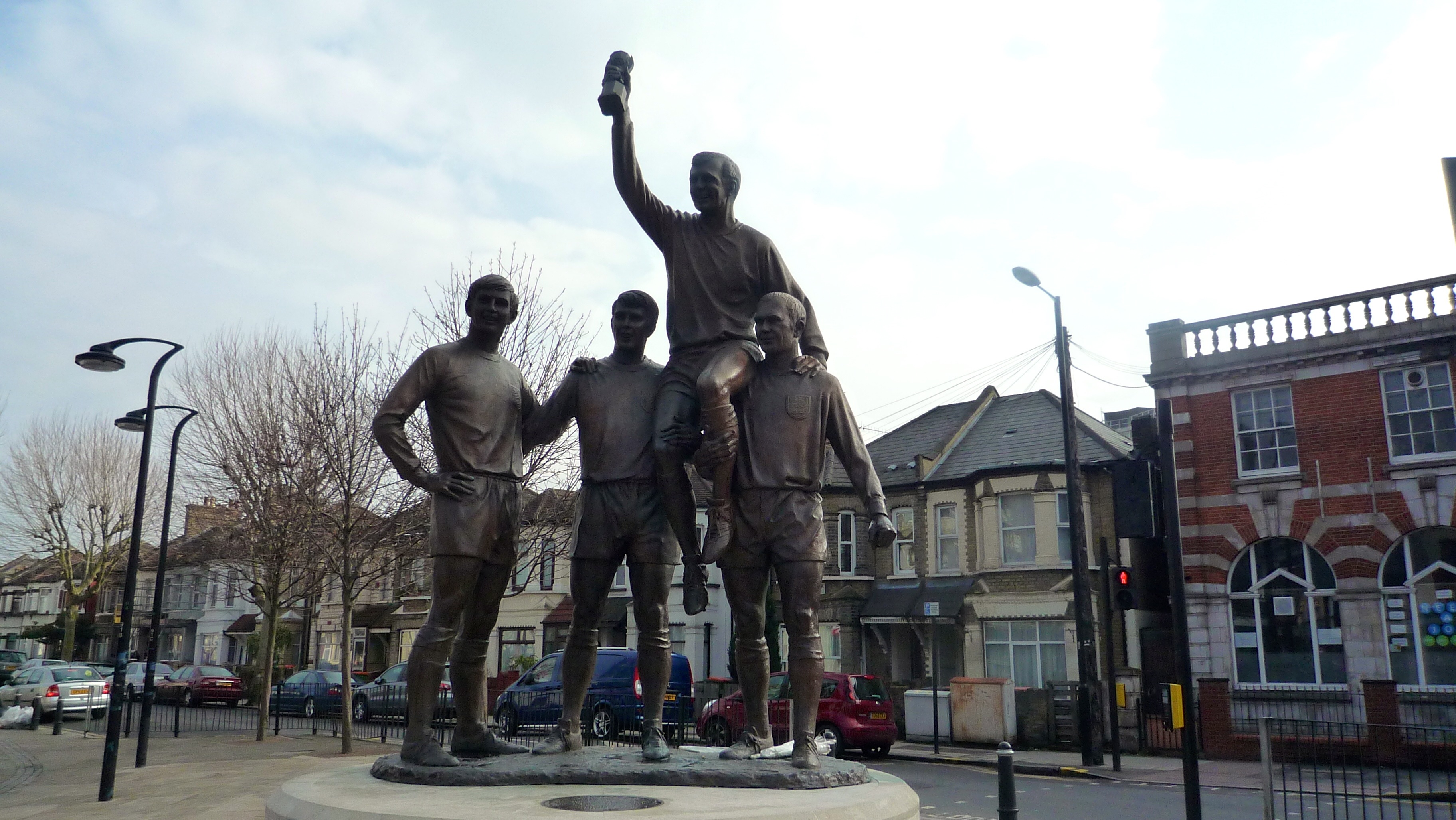 Peut-être parce que la tribune principale donne sur l’est, l’Essex de l’embouchure de la Tamise, région tant fréquentée quand j’allais y passer des vacances jusqu’en à Basildon, une cité dortoir construite après la guerre. Et, surtout, l’équipe de 1966 comptait Bobby Moore, Geoffrey Hurst, Martin Peters et Martin Wilson dont la statue devant le stade rappelle qu’ils furent les piliers de l’équipe d’Angleterre gagnante de la Coupe du Monde 1966 : les premiers temps des retransmissions télévisées…
