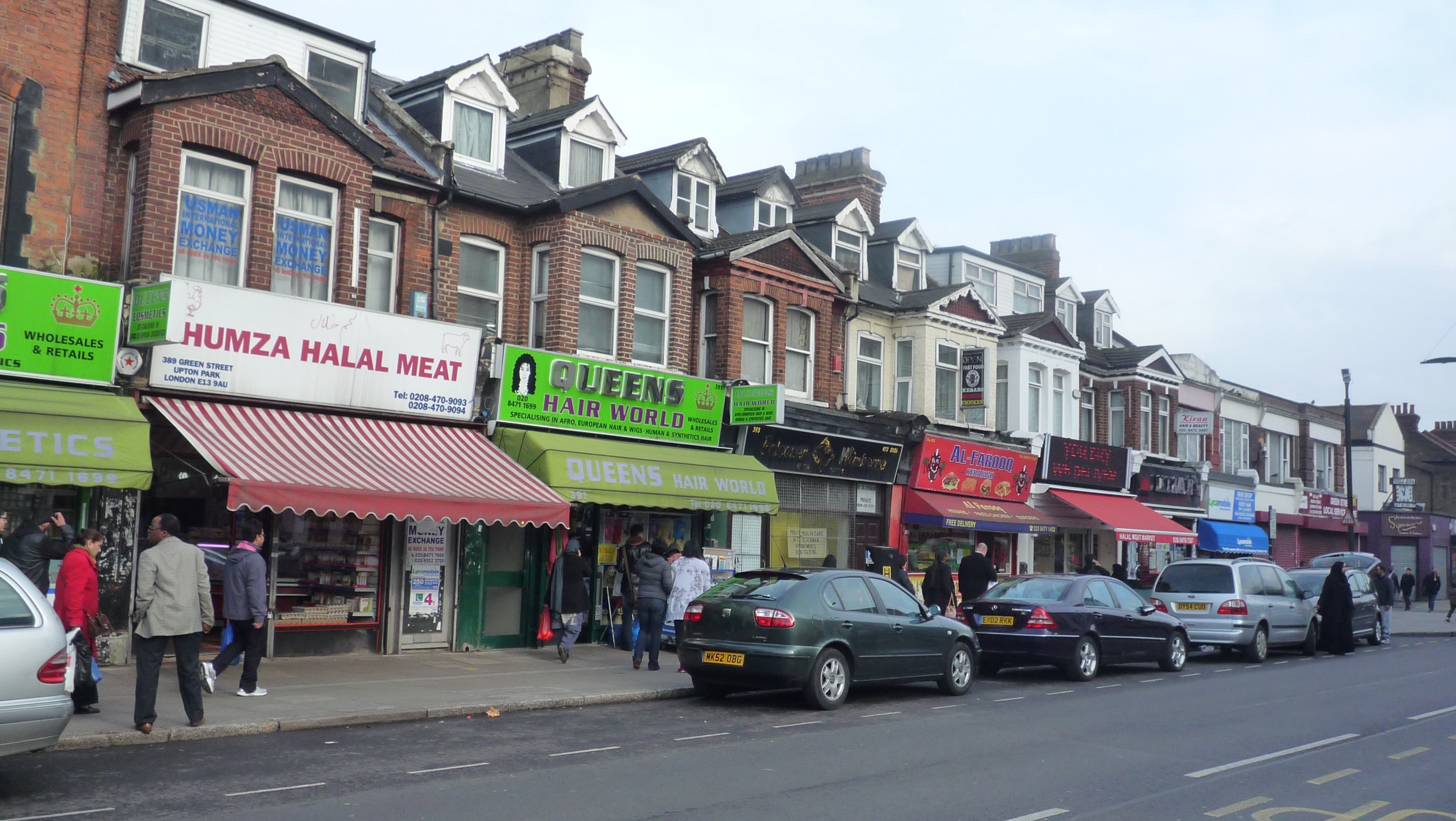 A la sortie du métro d’Upton Park, tout un monde s’ouvre à nous dans le Queen’s Market et dans Green Street : des communautés africaines et moyenne orientales, essentiellement musulmanes, vivent dans ce quartier au taux de chômage important en Grande-Bretagne.