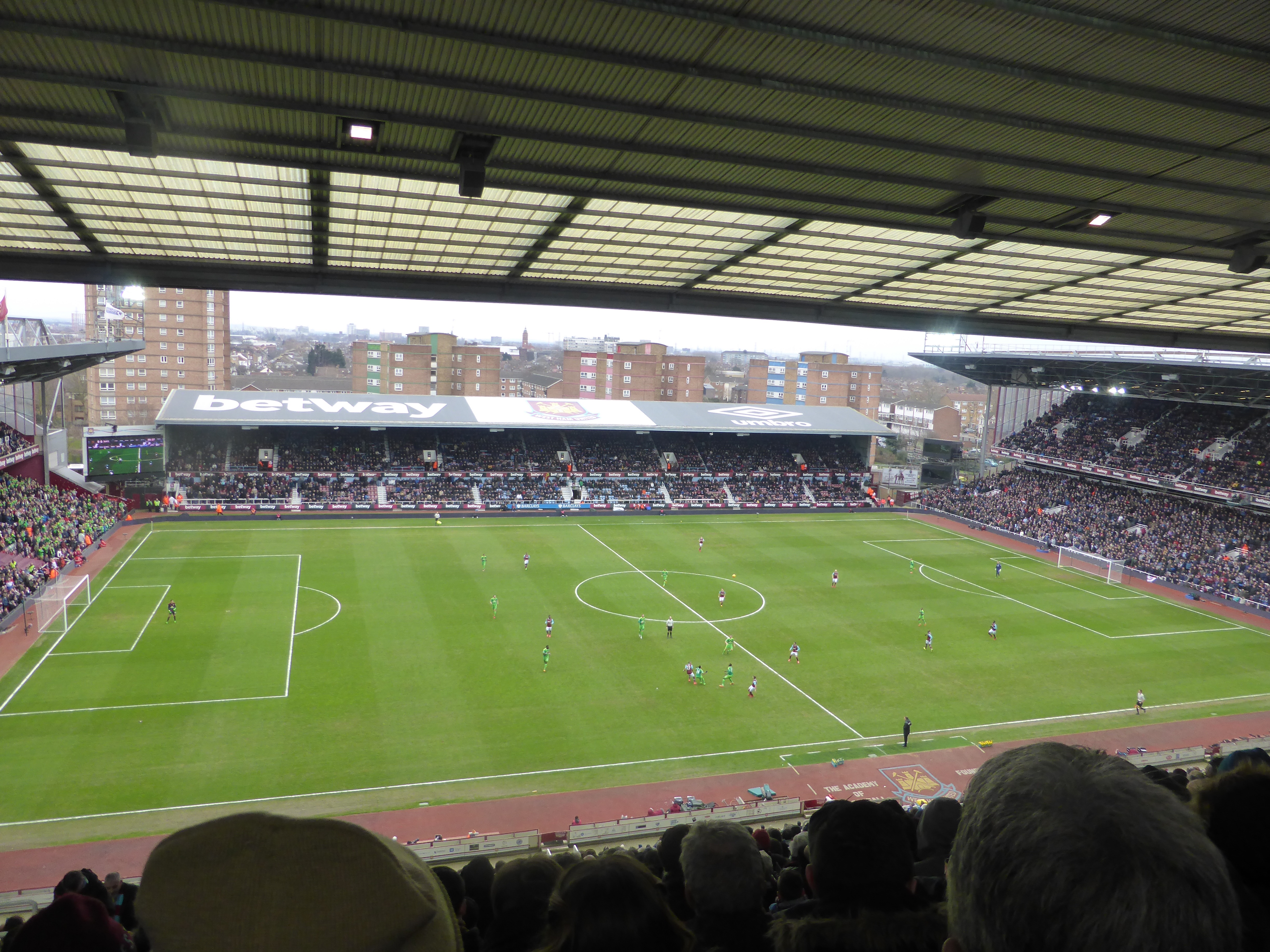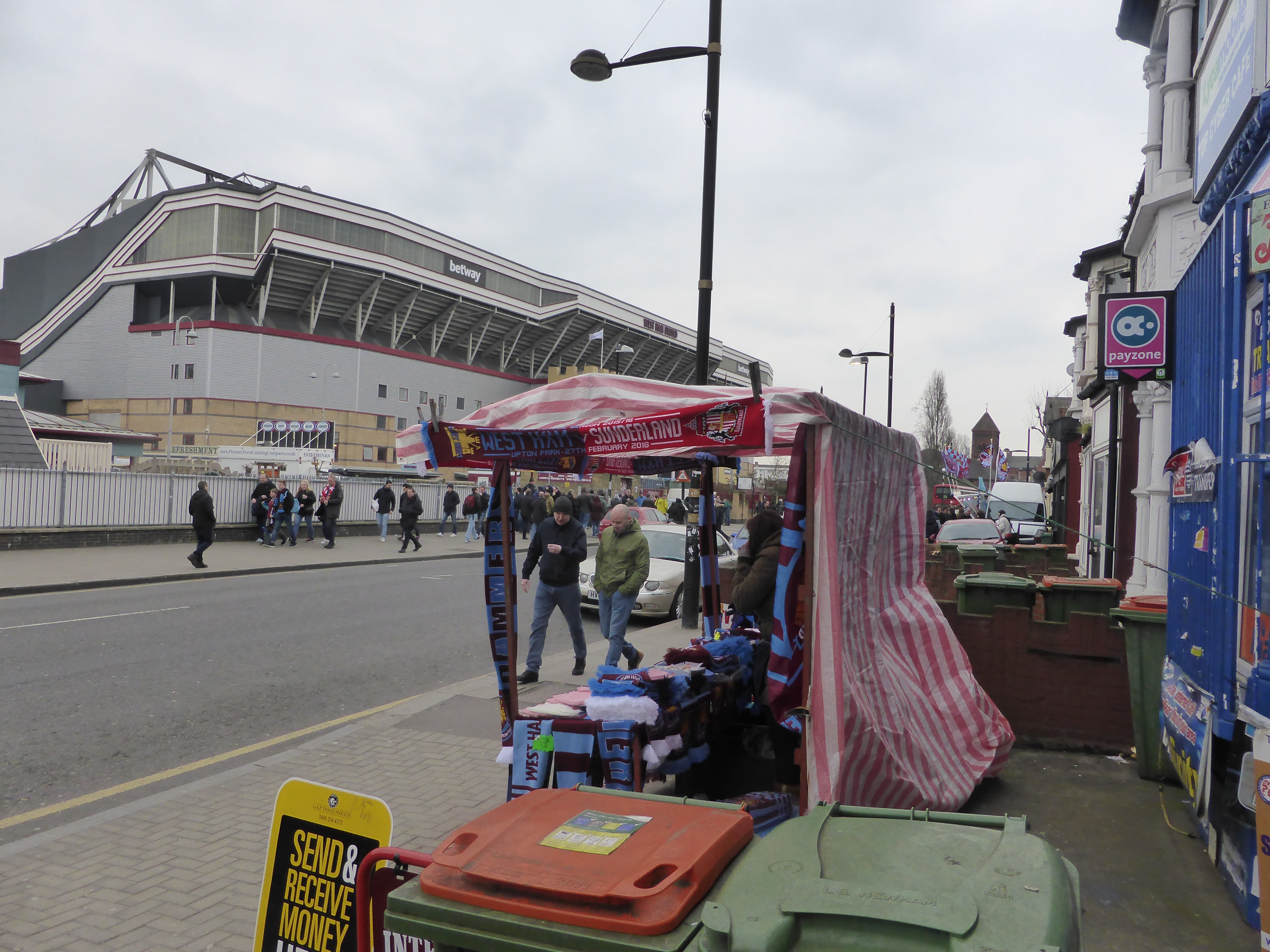 Le marché, la rue, les pubs, les petits stands d’écharpes et de bonnets, les grills ambulants, la foule encore populaire qui se rend au match dans un stade construit dans un environnement urbain bigarré : c’est un univers humain qui disparaîtra dans l’antre aseptisé du parc olympique. Mai 2016, c’est « Farewell Boleyn Ground » et « Bonjour Queen Elizabeth Stadium » en août 2016.