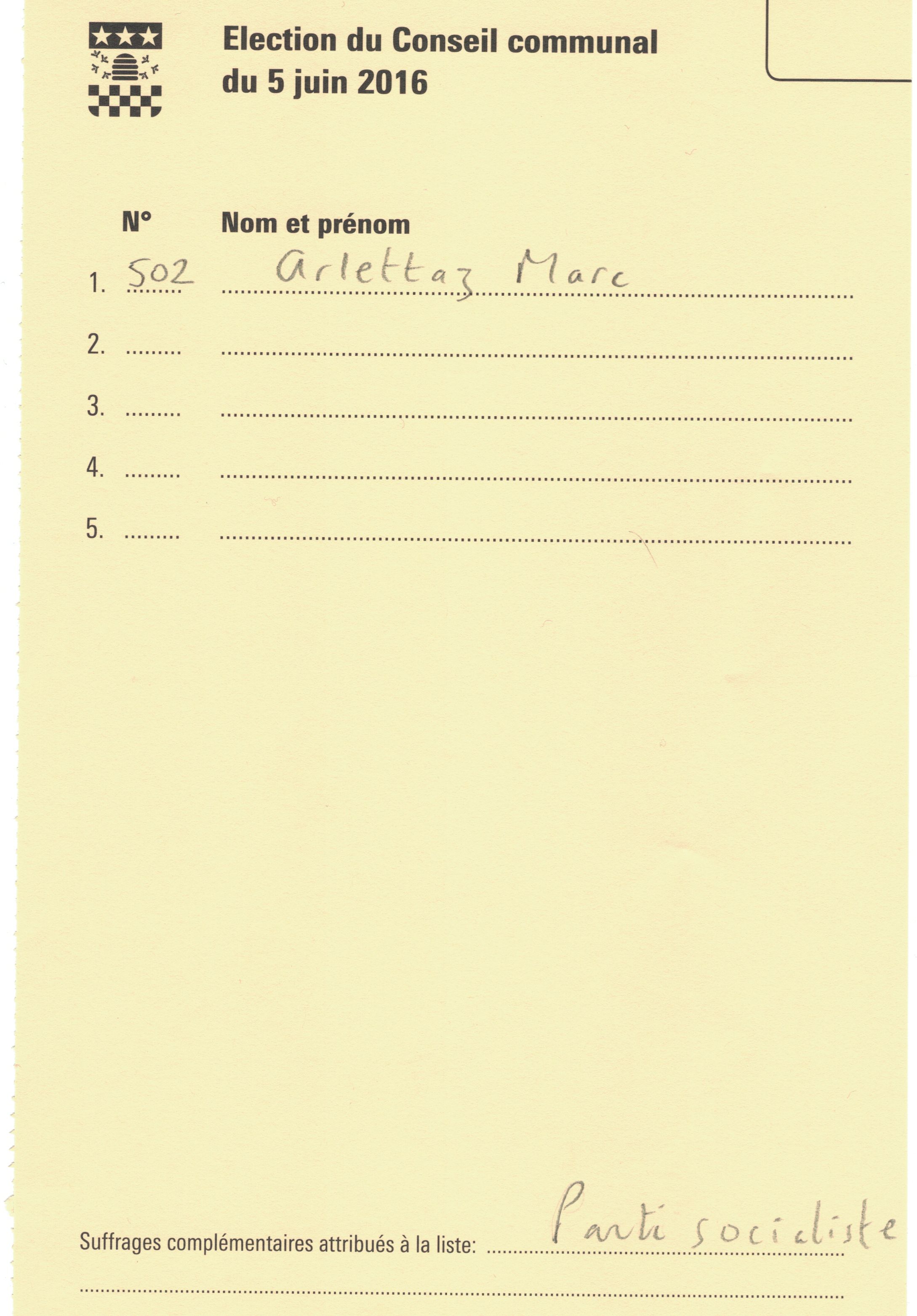 donner 1 suffrage à Arlettaz et les 4 autres à un seul parti (j’espère évidemment pour la gauche, pour le POP, le PS ou les Verts) c’est PRESQUE COMME VOTER COMPACT : vous respectez vos convictions car vous soutenez sans faille un parti, votre parti (ou des candidats de plusieurs partis puisque vous pouvez aussi panacher) et vous vous débarrassez de Legrix; c’est faire d’une pierre deux coups;