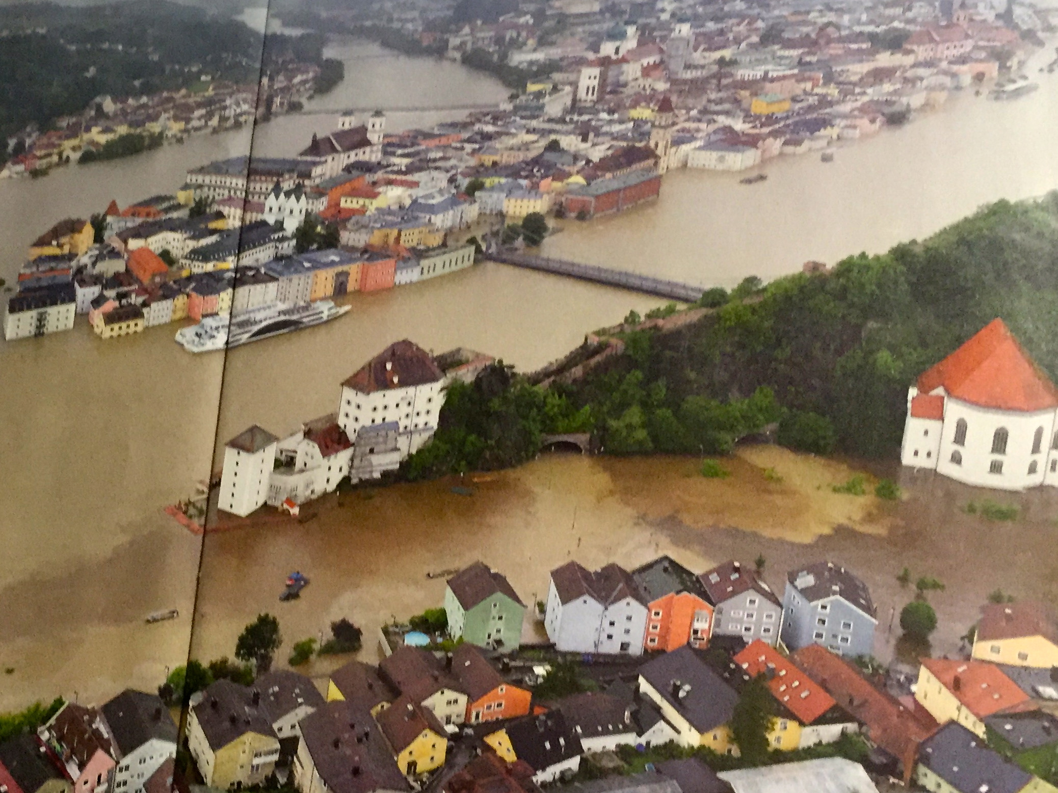 Nous qui vivons dans le Jura sommes protégés contre les catastrophes naturelles de toutes sortes qui menacent les citadins des villes que nous aimons. Ainsi Passau, où l’Inn se jette dans le Danube à l’extrême sud-est de l’Allemagne, a vécu la plus terrible inondation depuis 500 ans le 3 juin 2013.