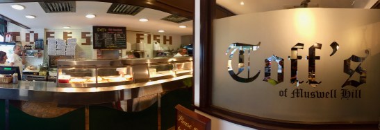Existant depuis près de 50 ans dans le nord de Londres et tenu par une famille cypriote, Toff’s est un traditionnel fish and chips (vente à l’emporter et restaurant). Le poisson y est si frais, la pâte de la friture si croustillante qu’on en rêve la nuit de ne pas y aller plus souvent.