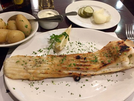 The restaurant’s main attraction is that it also offers grilled fish, which can even be served with jacket potatoes and traditional mashy peas, and the middle part of the skate (medium skate) is a real eye-catcher.