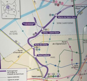 Le quartier s’organise, comme on le voit bien sur la photo, autour du parc Martin-Luther-King, une belle réussite paysagère qui nous plonge comme dans des bois et une forêt. A terme, Clichy-Batignolles réunira 7500 habitants et 13000 salariés. En novembre s’ouvre la nouvelle station de tram-ceinture à la Porte de Clichy et en 2020 la ligne 14 désengorgera la 13. La station Pont-Cardinet, déjà utilisée pour des trains régionaux de Saint-Lazare au nord-ouest parisien (c’est de là que je me suis rendu à Nanterre !) est actuellement en voie d’agrandissement (voir la grue jaune au bas de la photo).