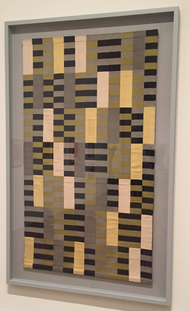 Malgré l’idéal égalitariste du Bauhaus, Anni Fleischmann fut incitée à rejoindre l’atelier de tissage plutôt que les classes de peinture ! Grand bien lui en fut puisque je pense qu’elle dépasse en originalité et sensibilité son propre mari qu’elle épousa en 1925 avant leur départ pour les Etats-Unis où ils enseignèrent et travaillèrent en Caroline du Nord.