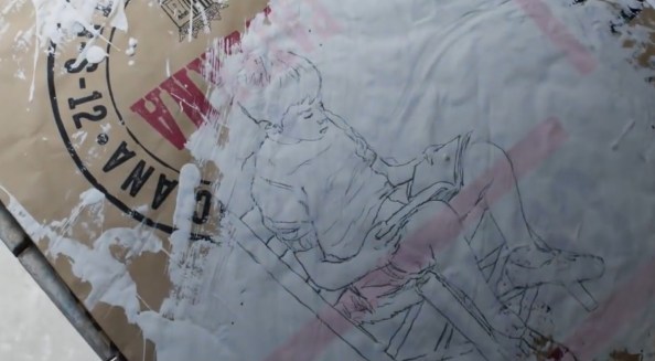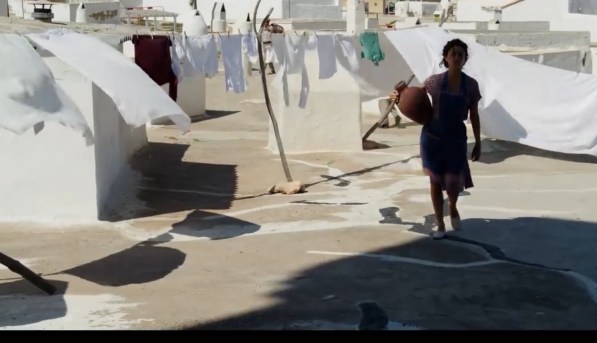 B) La fluidité des juxtapositions qui, incessamment, font passer du présent au passé dans une coulée temporelle sans accroc. Un objet, un élément (l’eau au début du film), un regard, une couleur assurent les transitions. Ici, le dessin du jeune héros exécuté par le peintre analphabète se retrouve plus tard dans une galerie de Barcelone.