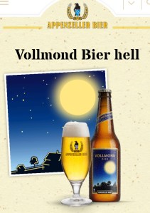 En effet, il faut s’intéresser à la bouteille de bière que ces messieurs brandissent comme une effigie. C’est la Vollmond Bier produite en Appenzell.
