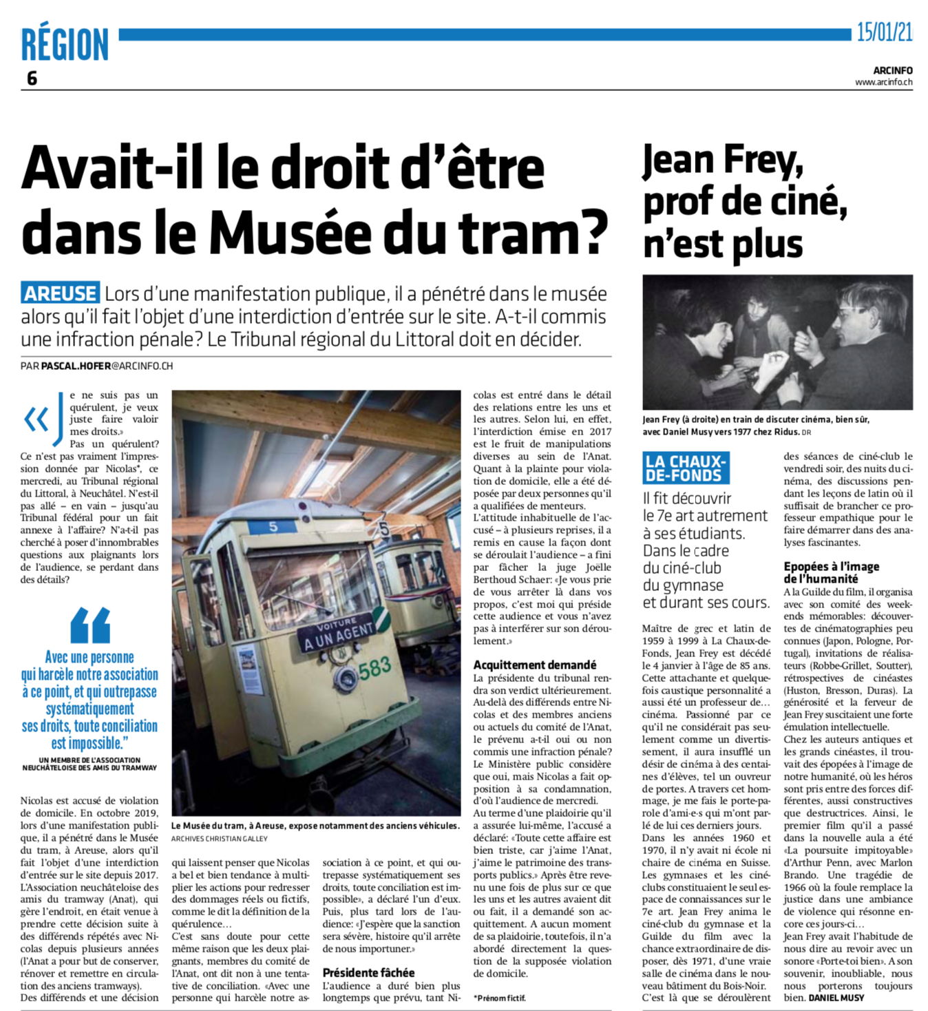 Jean Frey est mort le 4 janvier 2021. Le texte qu’ArcInfo m’a sollicité d’écrire et qui a paru aujourd’hui est le reflet de nombreuses discussions avec des ami-e-s dont j’ai été en quelque sorte le porte-parole. Je veux rendre ici hommage à ce cher ami, « professeur… de cinéma », de manière plus personnelle et approfondie que dans les 2’000 signes qui m’étaient impartis.