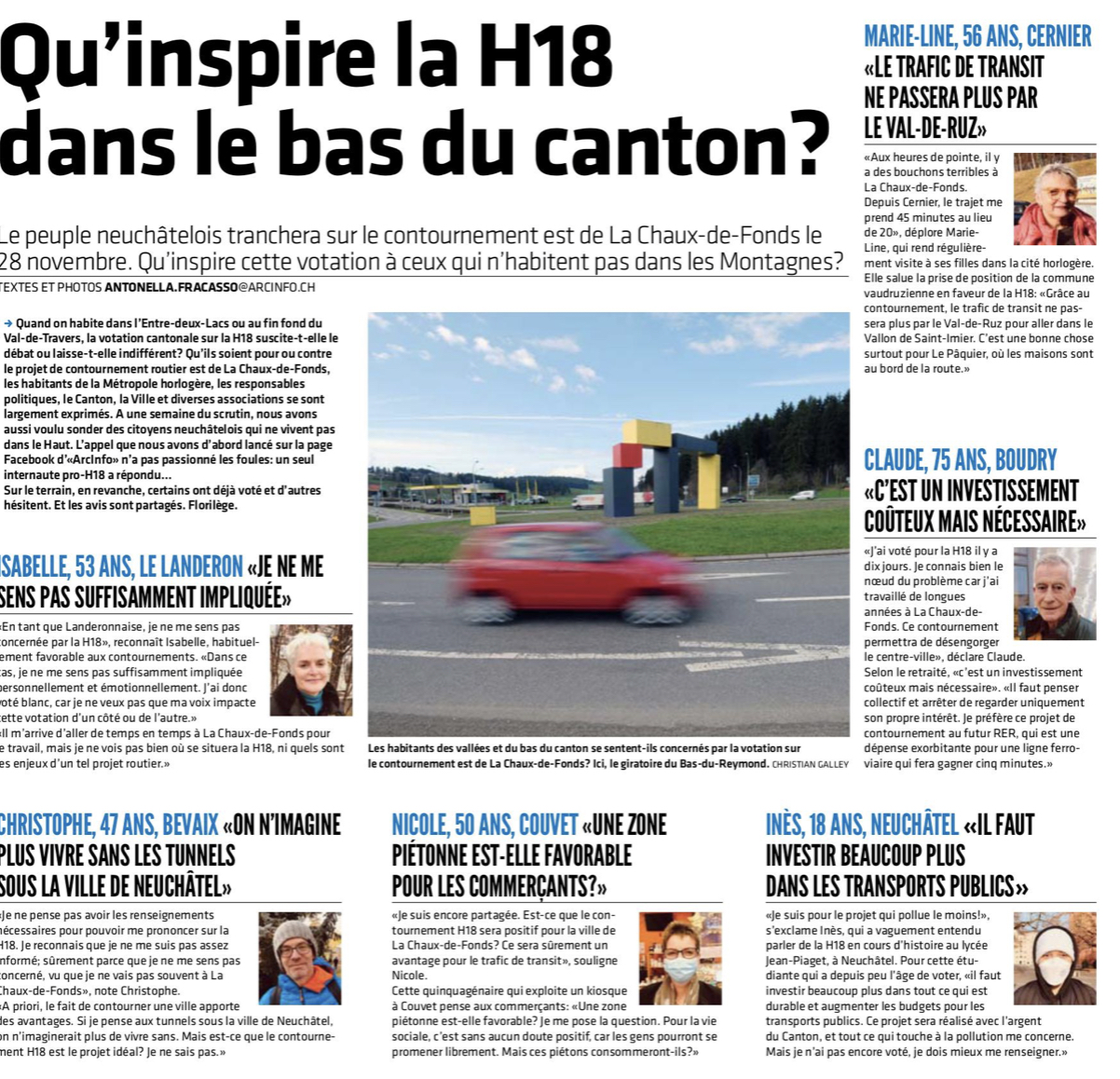 Vous devez encore réfléchir si vous voterez oui, non ou blanc au contournement H18 de La Chaux-de-Fonds le 28 novembre 2021. Vous avez de la peine à visualiser les changements prévus ; vous lisez des arguments contradictoires et vous devez encore réfléchir cette semaine avant de voter jeudi, vendredi ou samedi. C’est ce que beaucoup d’entre vous ont aujourd’hui exprimé dans ArcInfo.