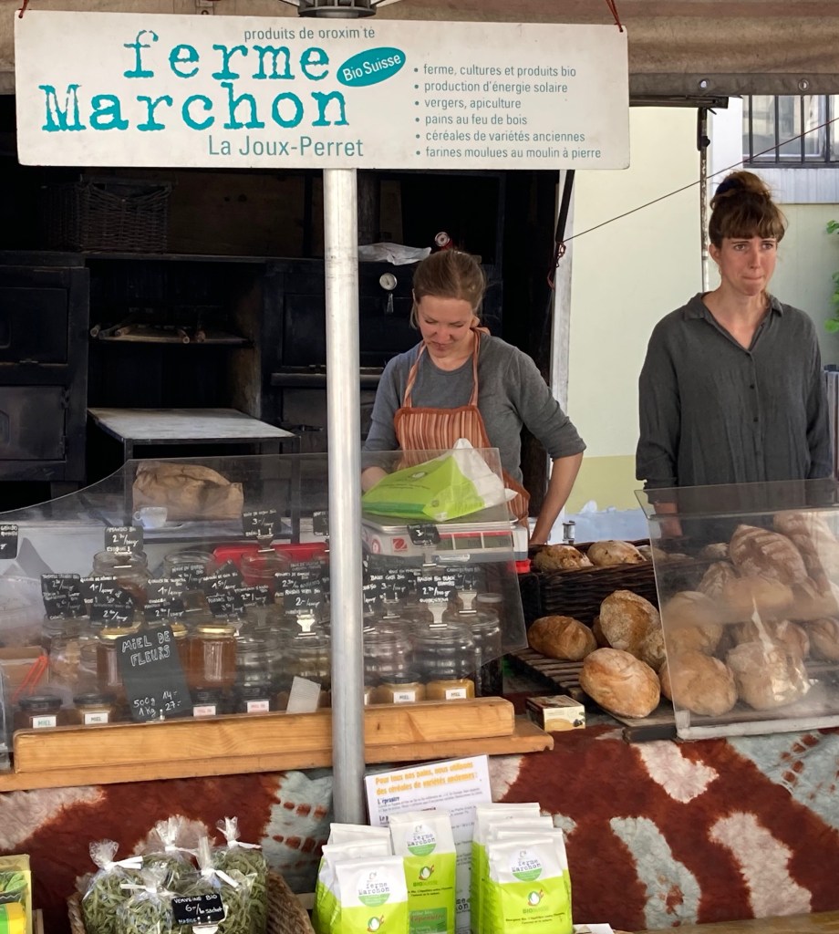 Enfin l’incontournable stand de la Ferme Marchon de la Joux-Perret et ses pains bio au feu de bois. Le multi-céréales est un must tout comme celui aux olives ou aux figues.
