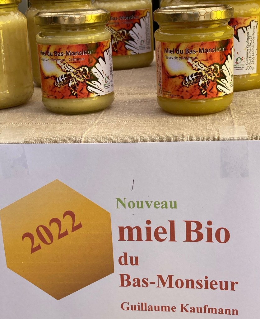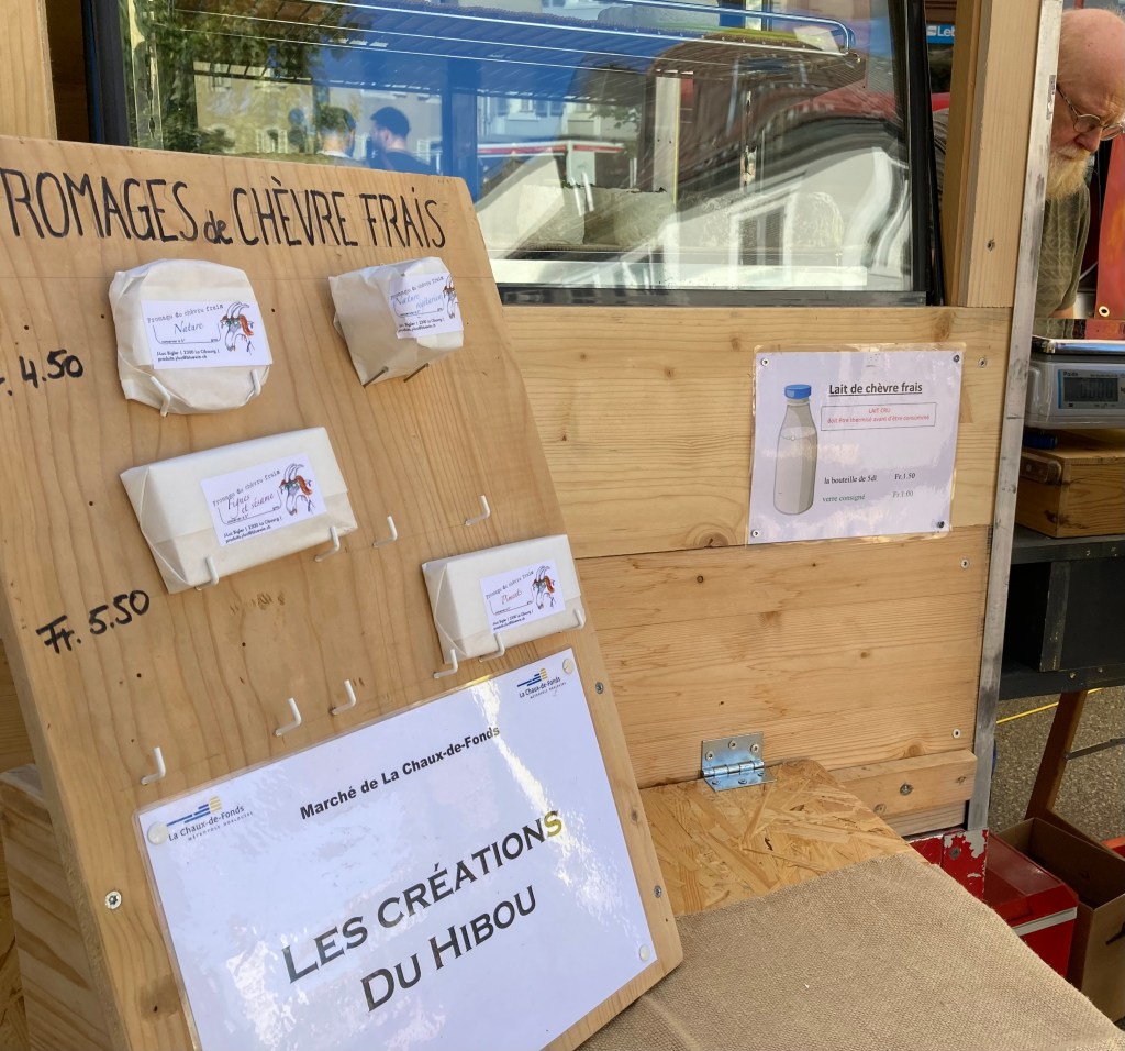 Jean-Luc Bigler habite le Bas-Monsieur, après le noble rucher de Guillaume Kaufmann, et propose ses fromages et lait de chèvre. Son chèvre au zaatar ainsi que le miel crémeux de Guillaume, tout récemment mis en pot, font l’honneur de son petit stand à l’est de la place.