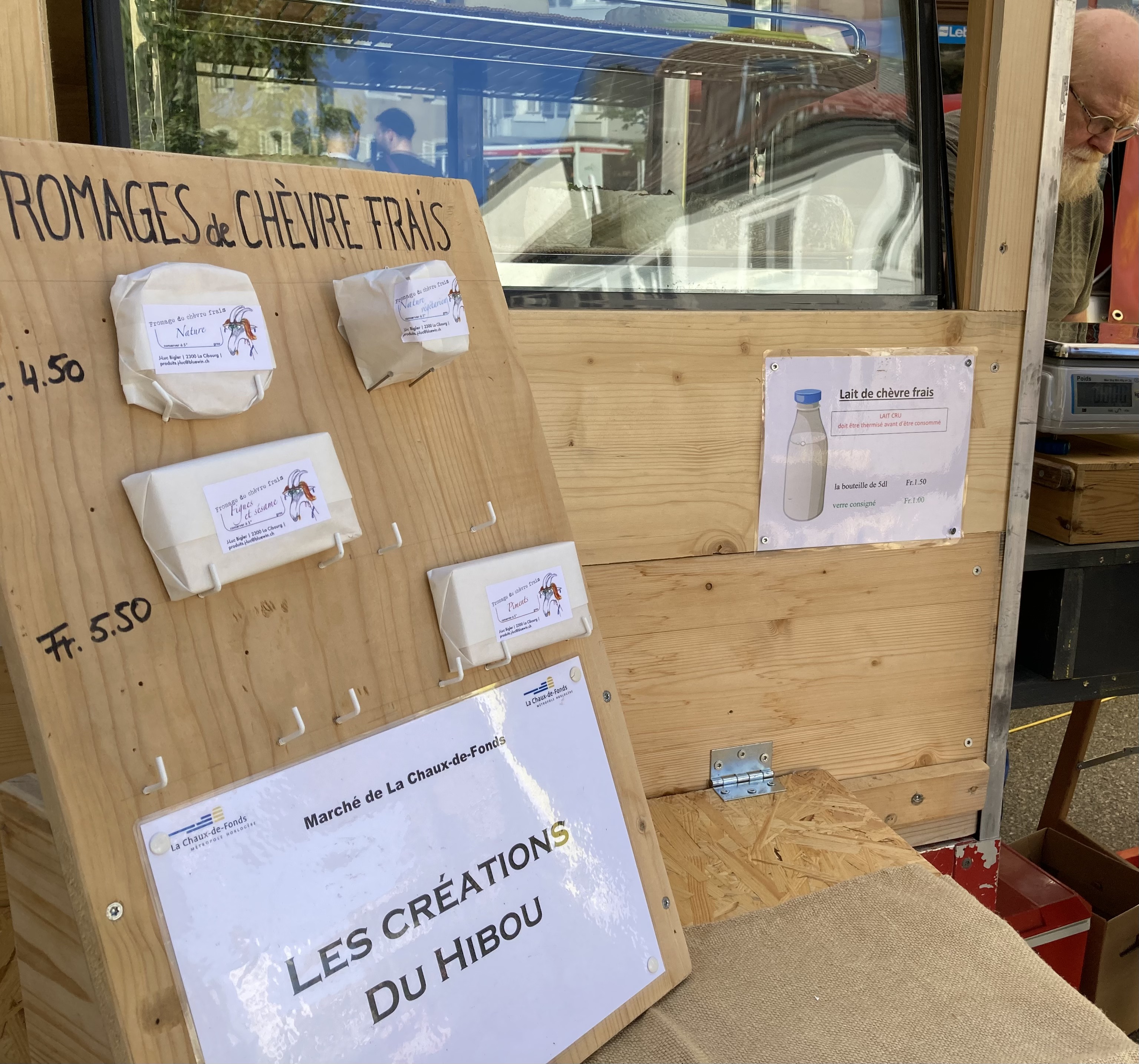Jean-Luc Bigler habite le Bas-Monsieur, après le noble rucher de Guillaume Kaufmann, et propose ses fromages et lait de chèvre. Son chèvre au zaatar ainsi que le miel crémeux de Guillaume, tout récemment mis en pot, font l’honneur de son petit stand à l’est de la place.