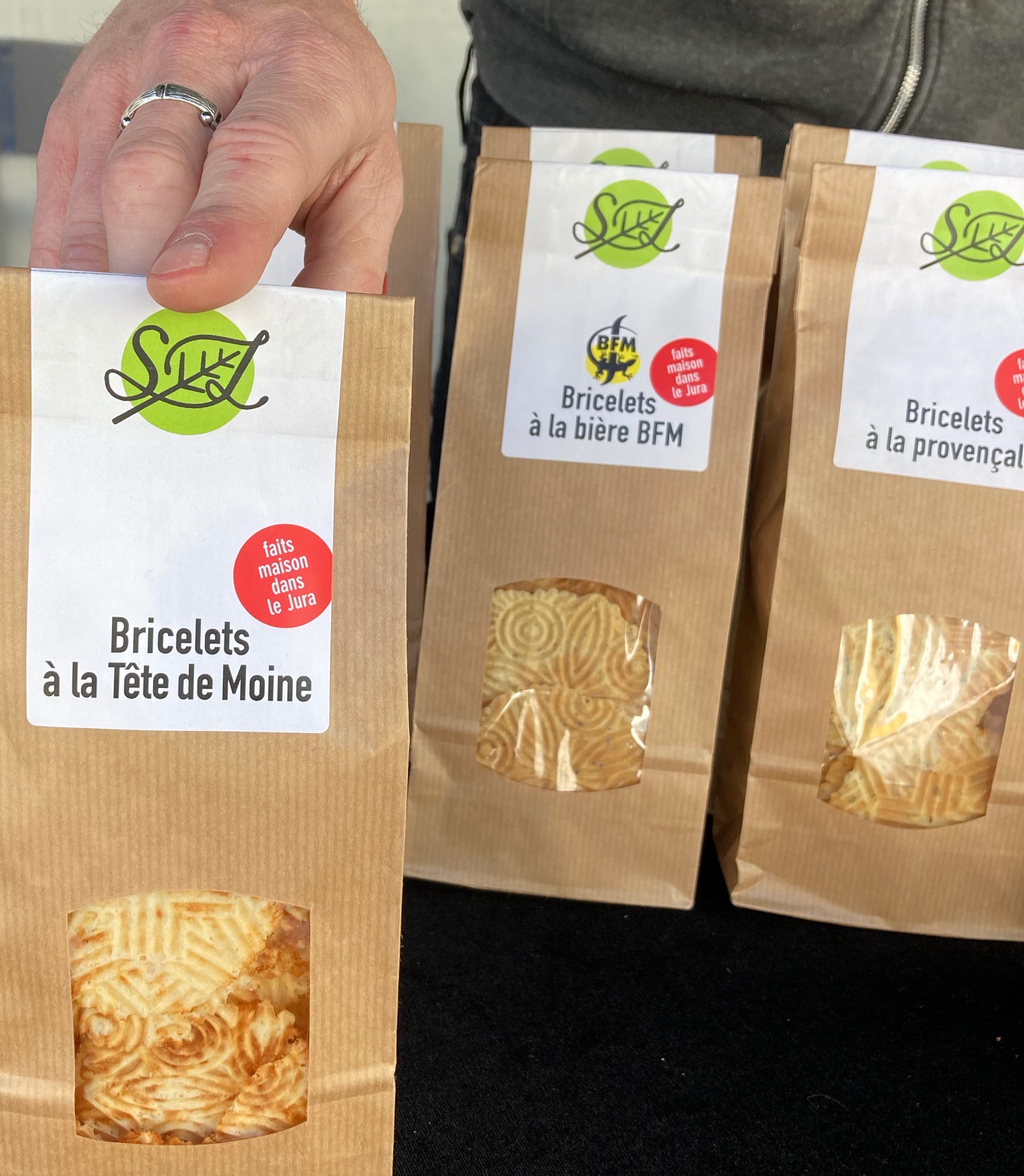 Presque à côté, retour dans les Franches avec les bricelets à la tête de Moine, à la BFM, aux saveurs provençales oui italiennes de Chloé (fille de l’ancien boulanger Wenger du Noirmont) et Jean-Luc. Idéal pour un apéro original et craquant.
