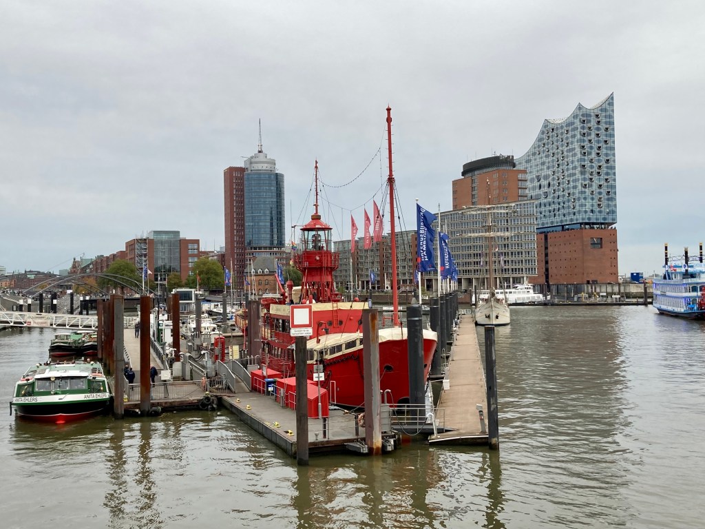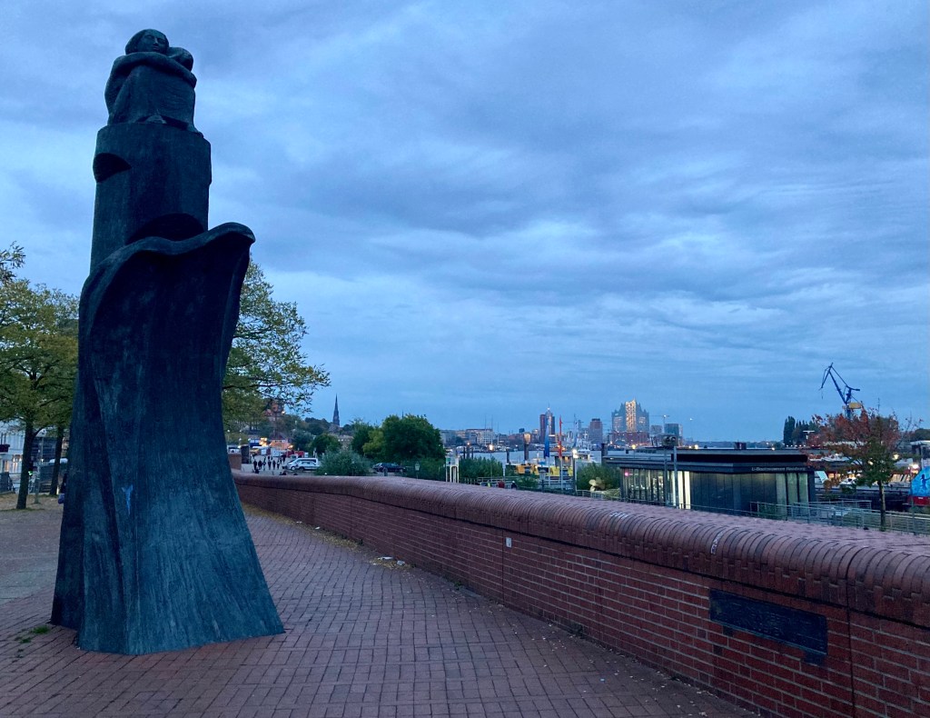Au terme de la promenade vespérale, quoi de mieux que de méditer sur le sort des marins disparus devant la statue de la Madonne der Meere, belle oeuvre néo-classique de Manfred Sihle-Wissel… En proximité chaleureuse avec Hambourg et son « Elfi », qui veille aussi sur elle. Et qui n’est pas le monstre qu’on aurait pu croire !