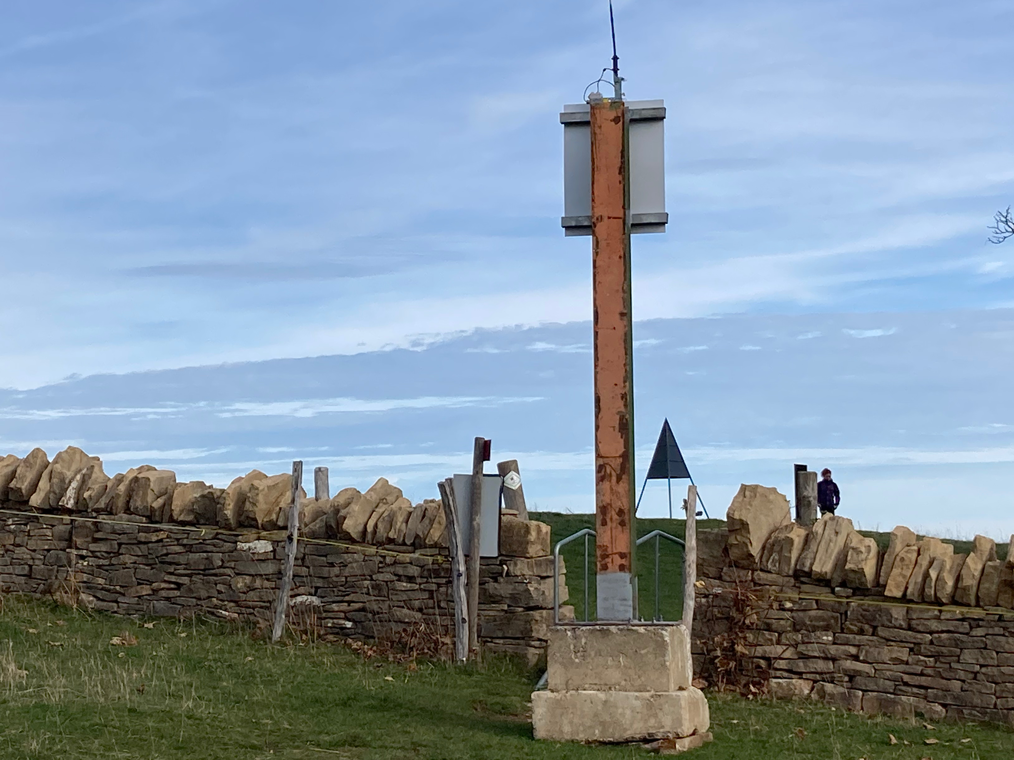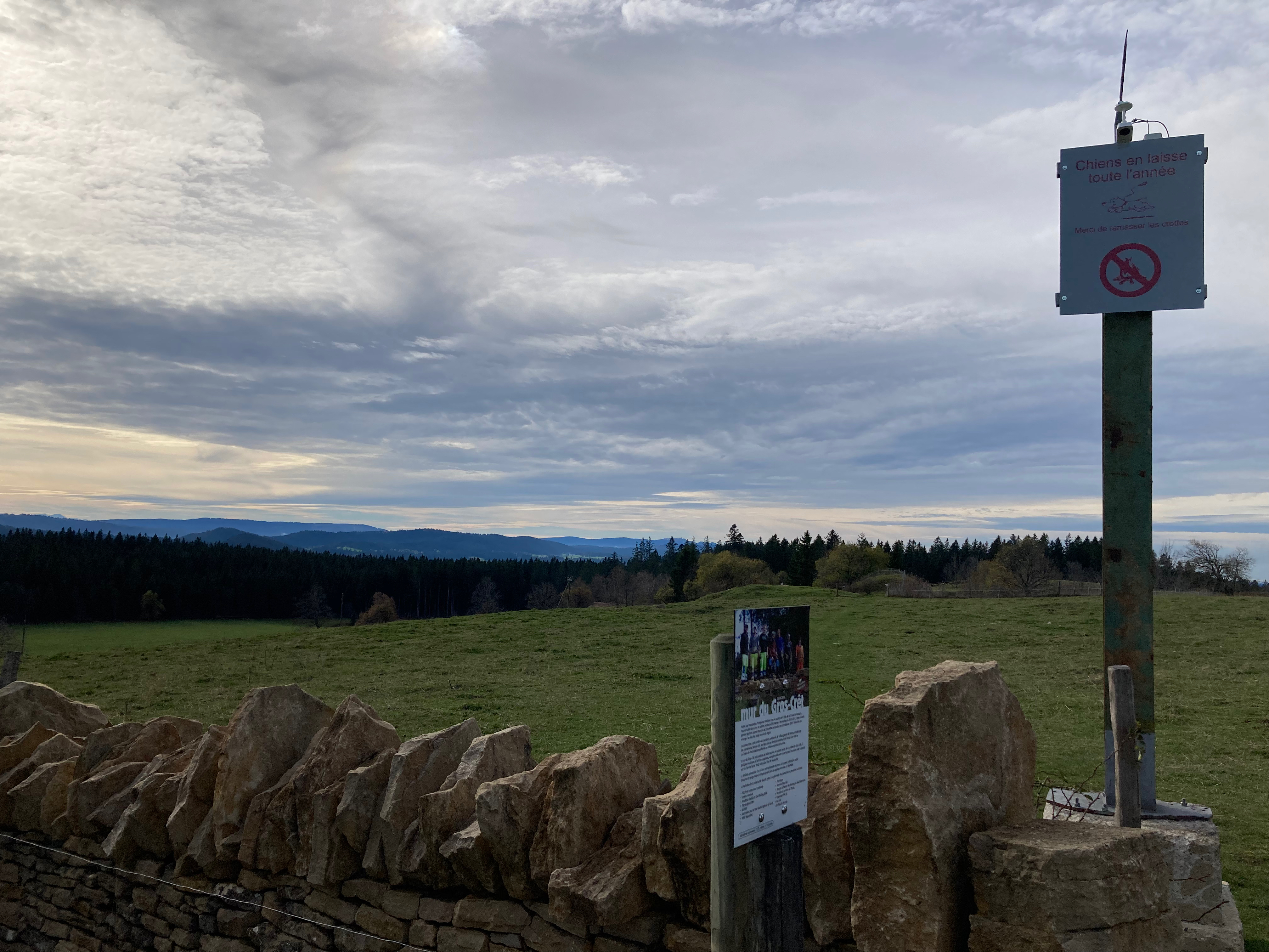 Ce texte présente des faits et pose des questions sur un objet planté devant le sommet de Pouillerel : sur un socle en béton, un mât métallique est surmonté d’une caméra braquée sur les promeneurs franchissant le passage du mur en pierre sèches.