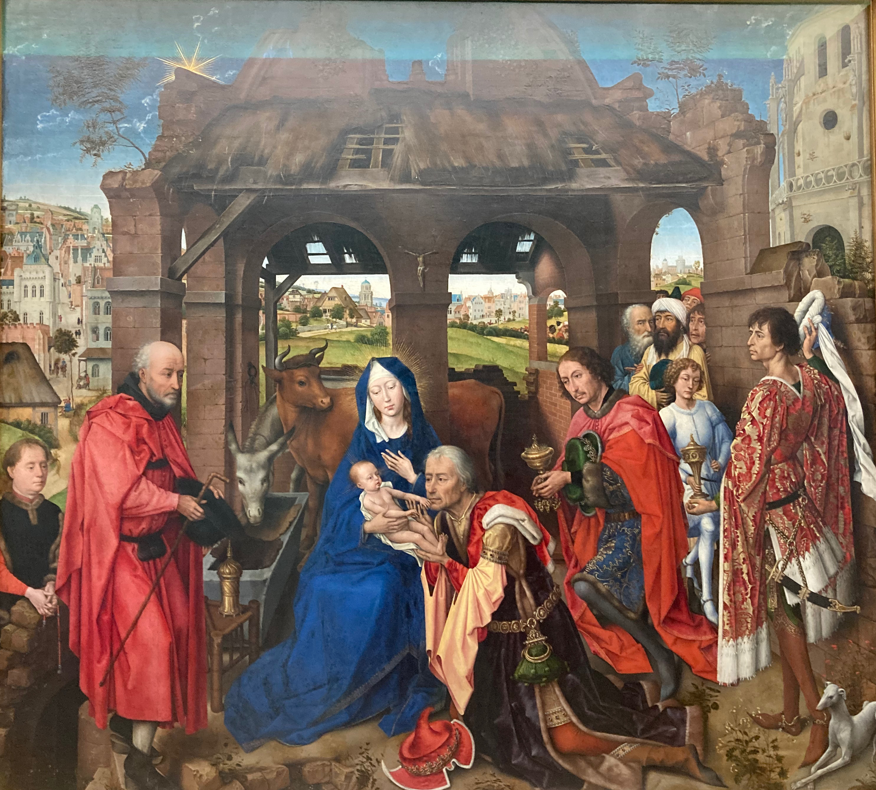Le tryptique de l’Adoration des mages, du peintre flamand Roger van der Weyden, fut pris pour une oeuvre de van Eyck par Goethe. On est vers 1435 alors qu’à Florence Masaccio invente la perspective.