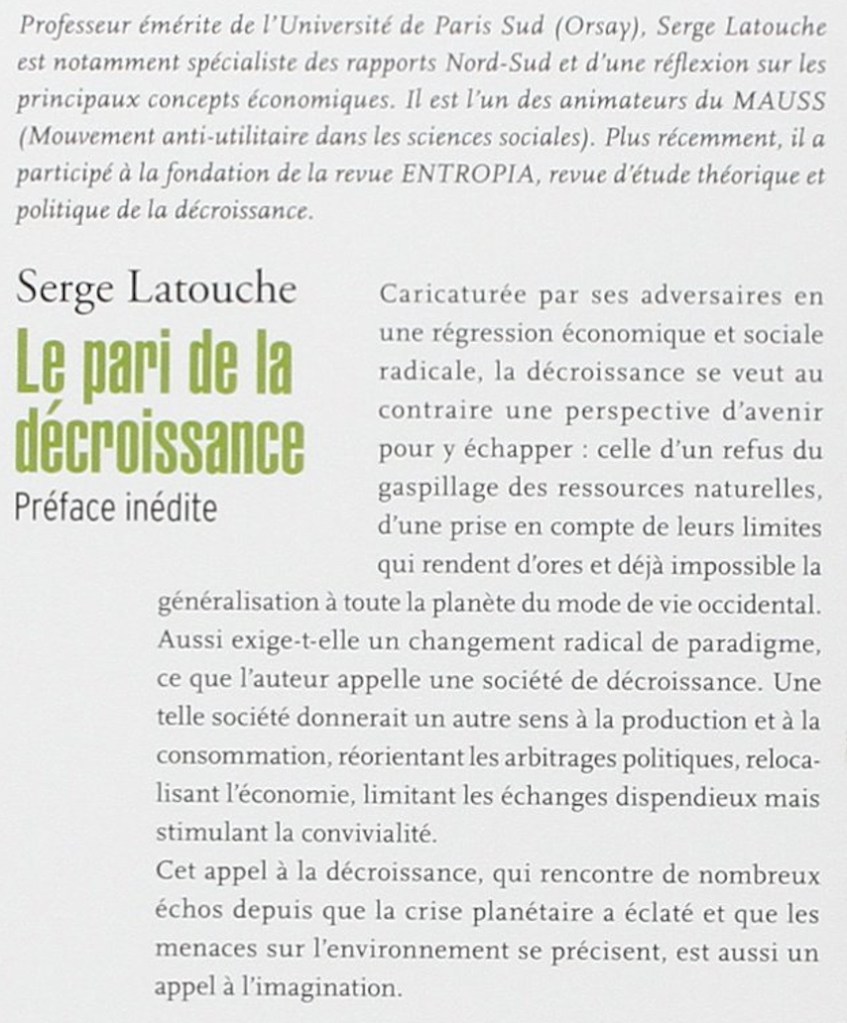 Sur Wikipédia, un article résume bien la pensée de Serge Latouche :