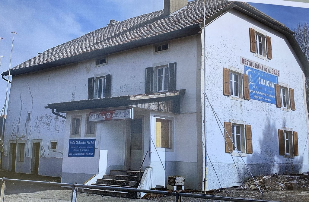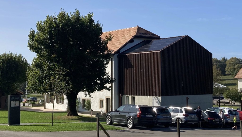 À l’ouest la grande salle s’ouvre sur le paysage incomparable des Franches-Montagnes et la voie du petit train rouge La Chaux-de-Fonds-Saignelégier.