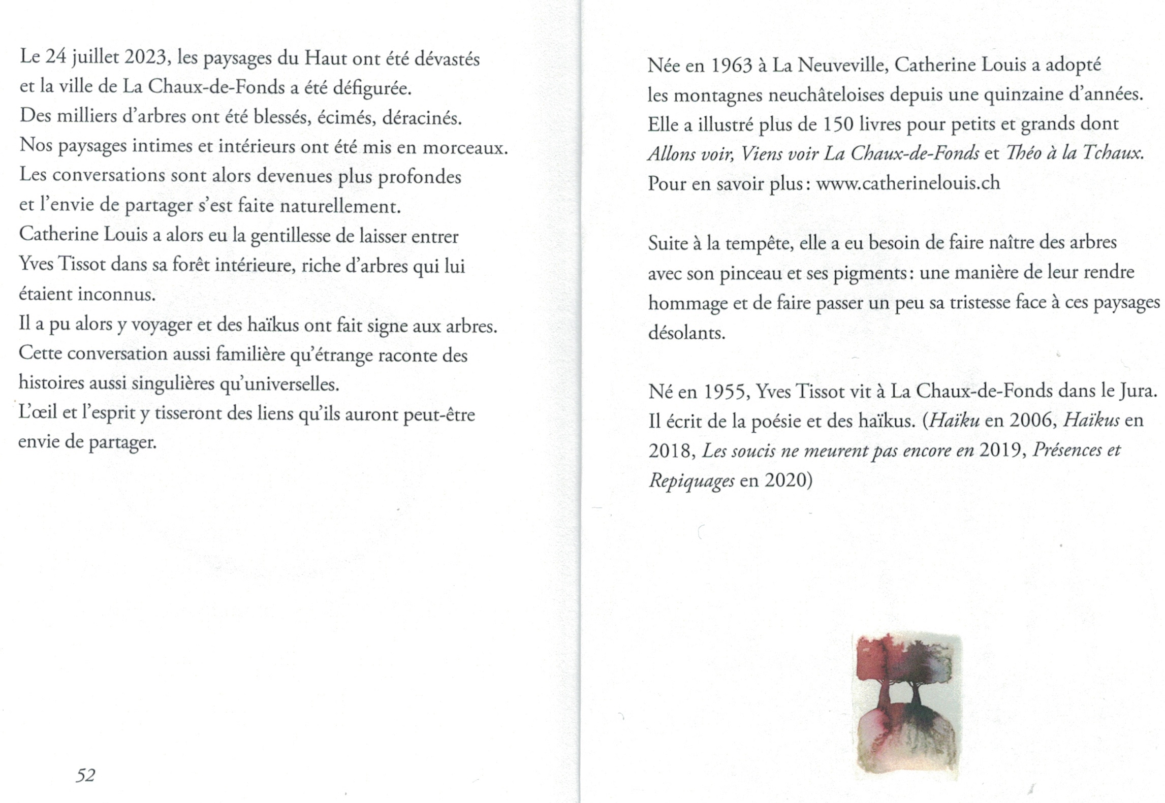 L’illustratrice et artiste Catherine Louis publie à compte d’auteur un petit livre avec des dessins d’arbres accompagnés de haïkus du poète Yves Tissot.