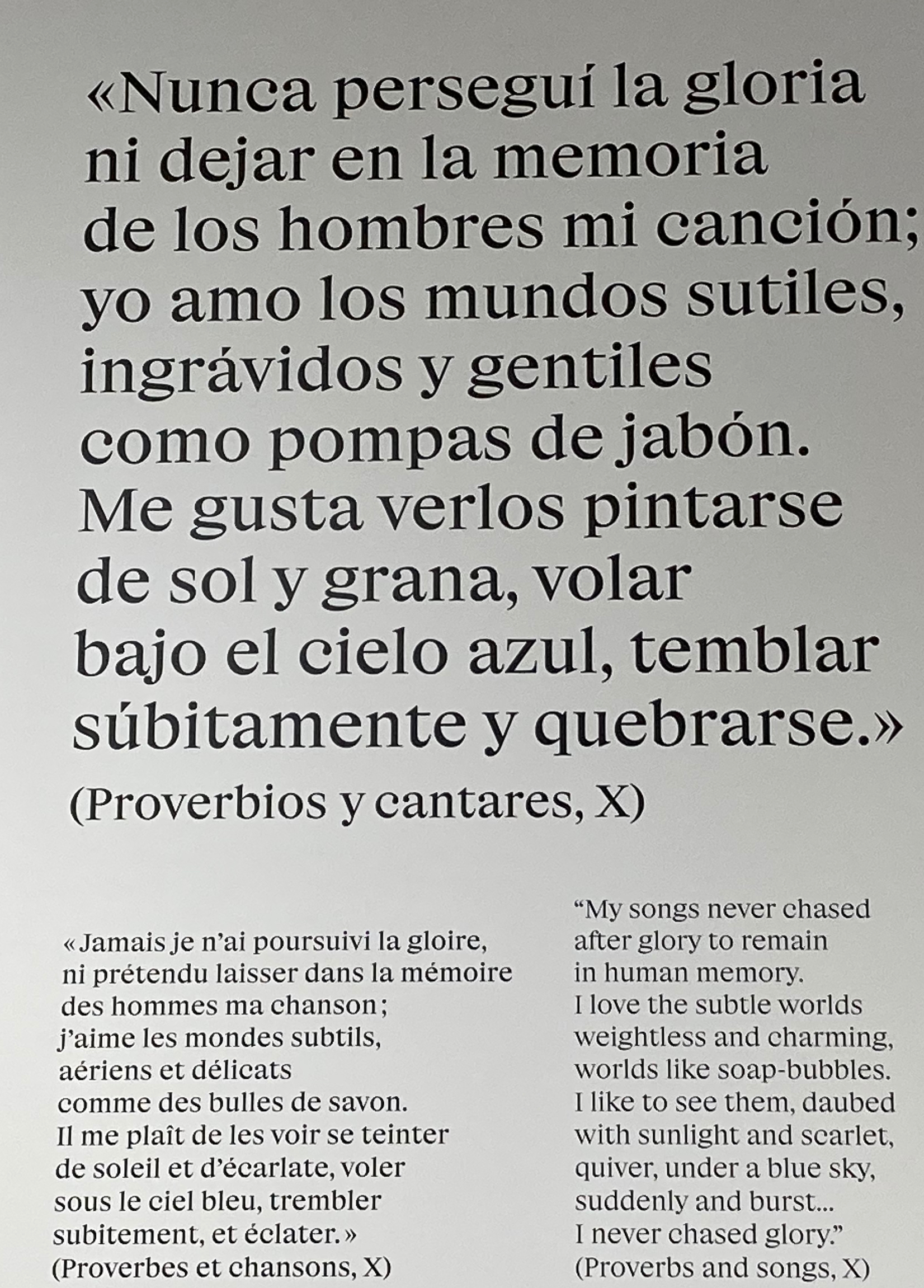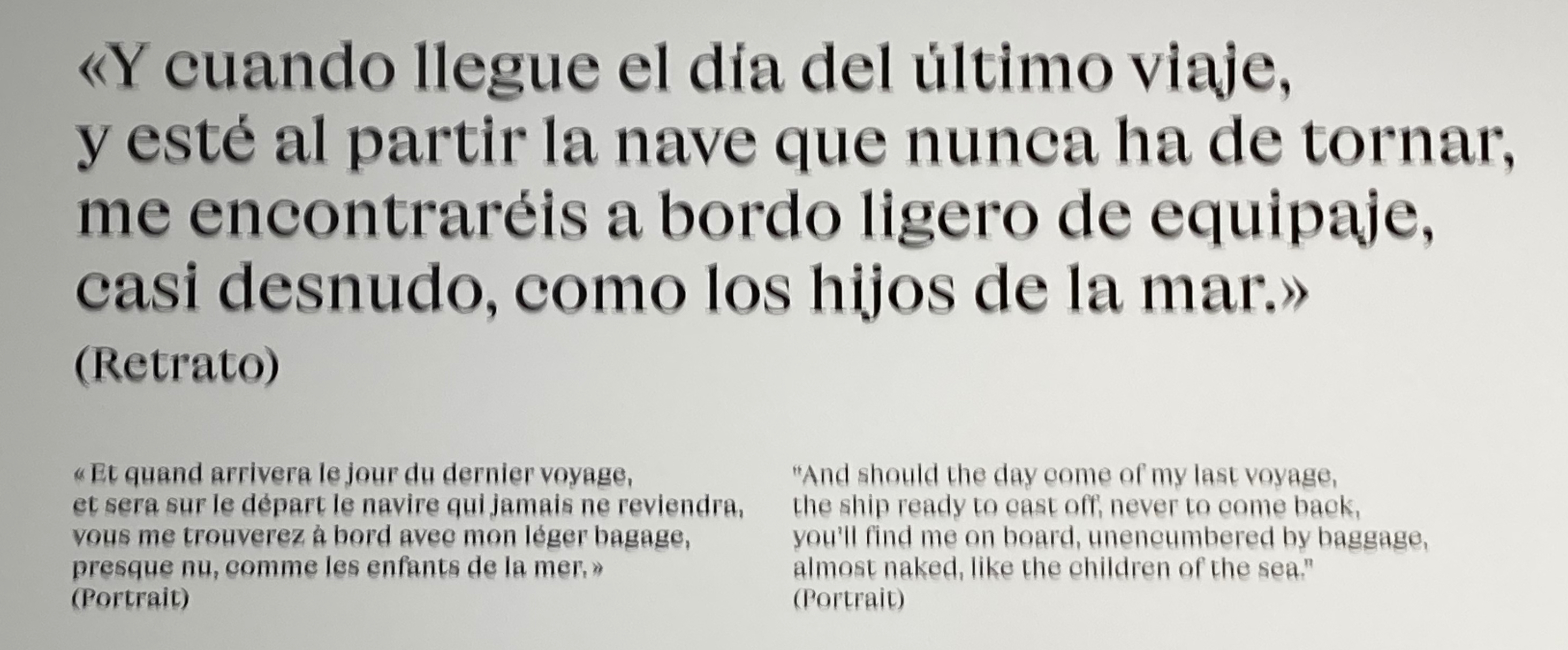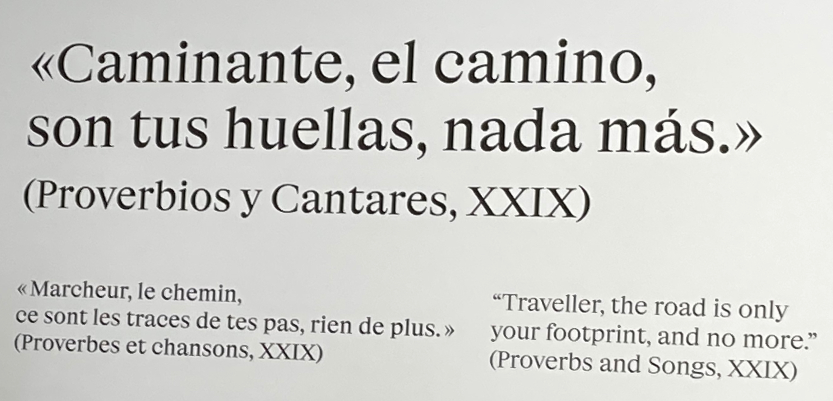 L’espace muséographique est sobre, avec les deux lits de mort du poète et de sa mère, des panneaux explicatifs des derniers jours de la vie de Machado, l’original du registre de l’hôtel avec son nom et sa profession, « professeur ».