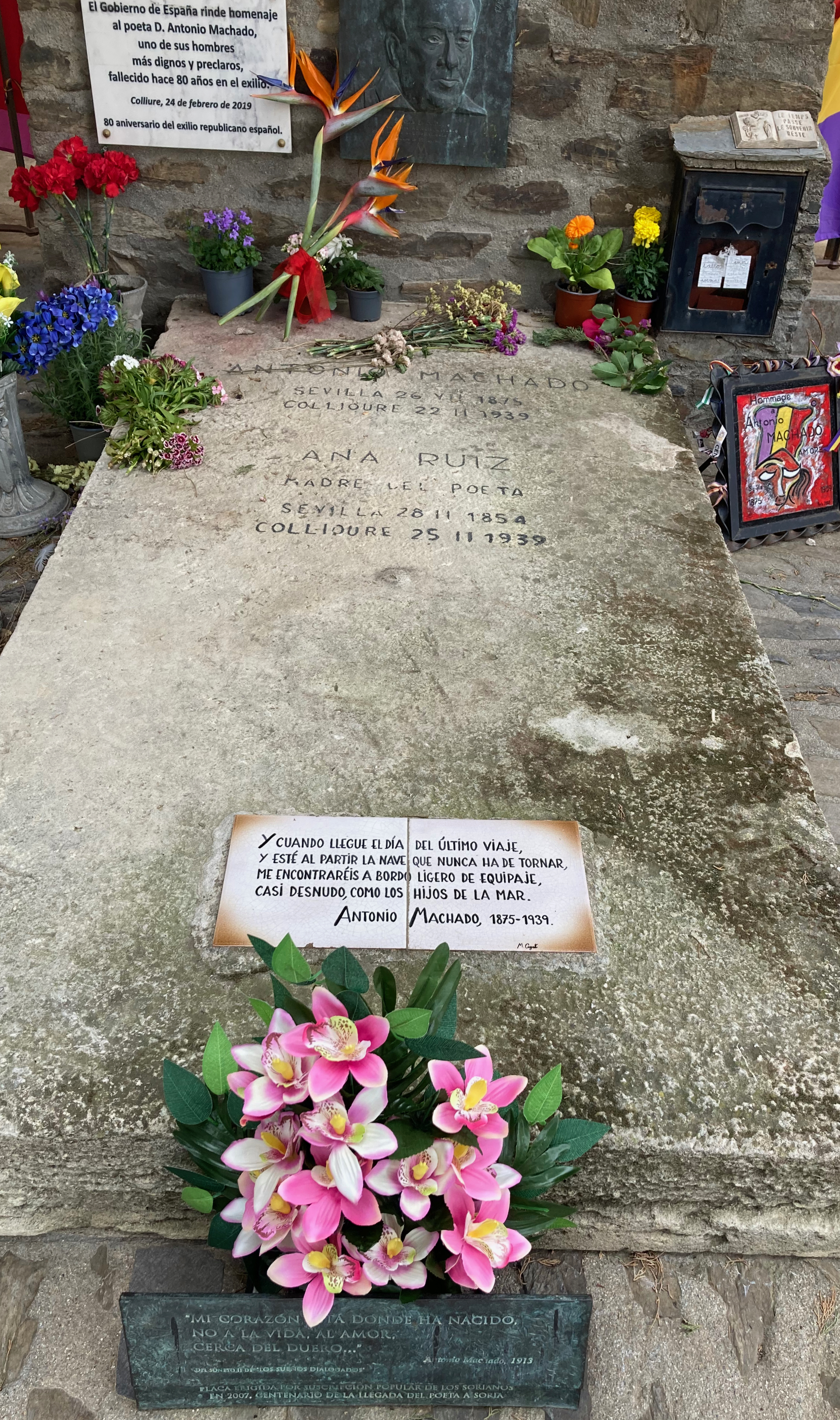 Les obsèques civiles, comme l’avait demandé Antonio à son frère, ont lieu le jeudi 23 février, à quatre heures de l’après-midi. Présidées par le maire de Collioure, Marceau Banyuls, elles réunissent une foule de réfugiés, d’amis et d’admirateurs du poète. Le cercueil, recouvert du drapeau républicain, est porté par douze soldats espagnols de la Deuxième Brigade de cavalerie, reclus dans le Château Royal de Collioure. Le corps du poète est déposé dans une niche prêtée par la famille Py-Deboher, amie de Pauline Quintana. » (texte extrait du site internet de la Fondation Machado à Collioure).