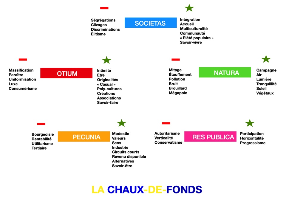 La vie sociale, les loisirs, les revenus disponibles avantageux (par rapport à toutes les localités suisses romandes situées au bord de lacs), la nature et la chose publique, cinq piliers de vie dans une communauté unique, avec l’avenir devant elle : notre belle ville de La Chaux-de-Fonds.