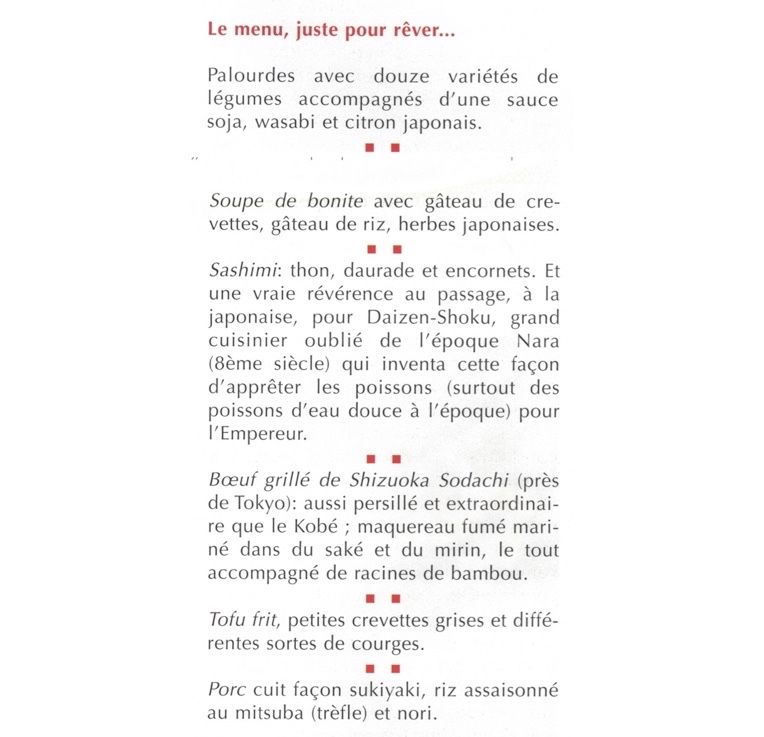 Dans le numéro 38/39 de la revue Vinifera, ce menu est détaillé.