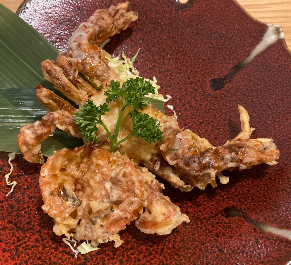 Vient le tour d’un kani tempura, un crabe frit qu’on mange entier. Renversant.