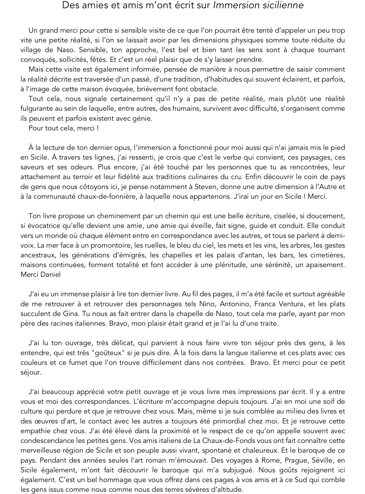 En vous remerciant encore pour ce magnifique carnet de voyage qui m’a donné envie de retourner dans ces belles contrées siciliennes, je vous adresse mes salutations les plus affectueuses.