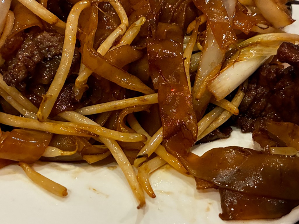 J’ai terminé par un chow fun au boeuf, du sauté de boeuf aux nouilles de riz avec des pousses de bambou.