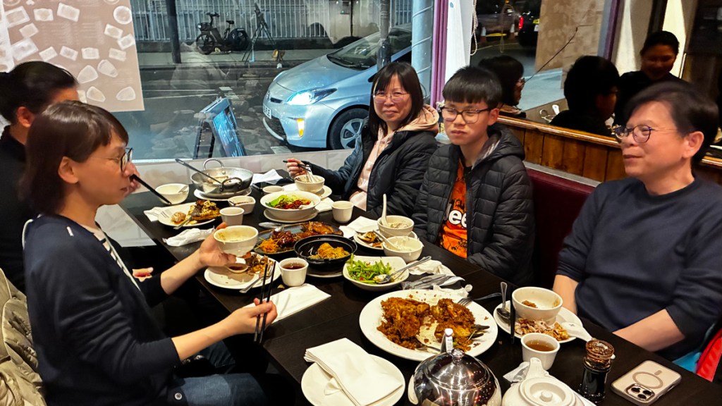 Le meilleur était à venir au Dim Sum Duck, un si minuscule restaurant très médiatisé qui oblige les clients, hiver comme été, à attendre au moins trente minutes avant d’avoir une table, le plus souvent dans une guérite chauffée avec des petits radiateurs à infra-rouge. D’où les médiocres images rougeâtres que j’ai pu prendre dans la guérite…