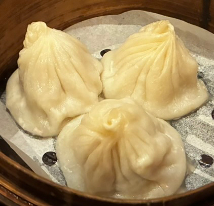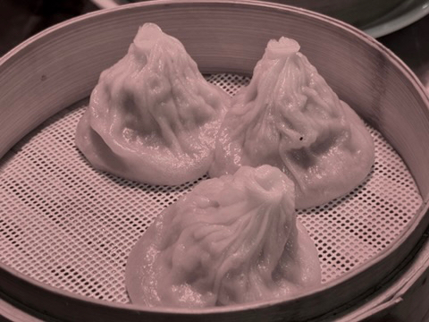 Ses spécialités servies en continu sont les dim sum, ces entrées cuites à la vapeur et servies sur des petits caissons en bambou. Le plus classique et le Xao Long Bao, un ravioli en forme conique contenant une boulette de porc et son bouillon. Fondant, goûteux mais difficile à manger avec des baguettes en plastique. Je me rattraperai trois jours après…