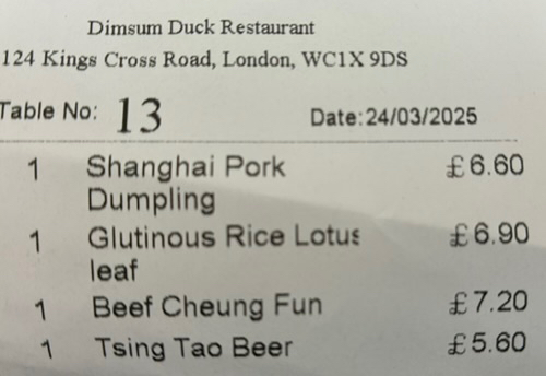 À l’est des grandes gares de Kings Cross/Saint-Pancras International, deux petits restaurants chinois tenus par des familles d’exception m’ont procuré de telles délices que je vous les présente. J’avoue que sans la revue Time Out, je ne m’y serais jamais aventuré. Les deux sont très petits au point qu’à Dim Sum Duck, il faut faire la queue au froid et accepter de manger dans une guérite à l’extérieur quand on est seul ! Ce sont des paradis pour les mets cuisinés à la vapeur dans l’esprit de la cuisine du sud de la Chine (Canton et Hong Kong).