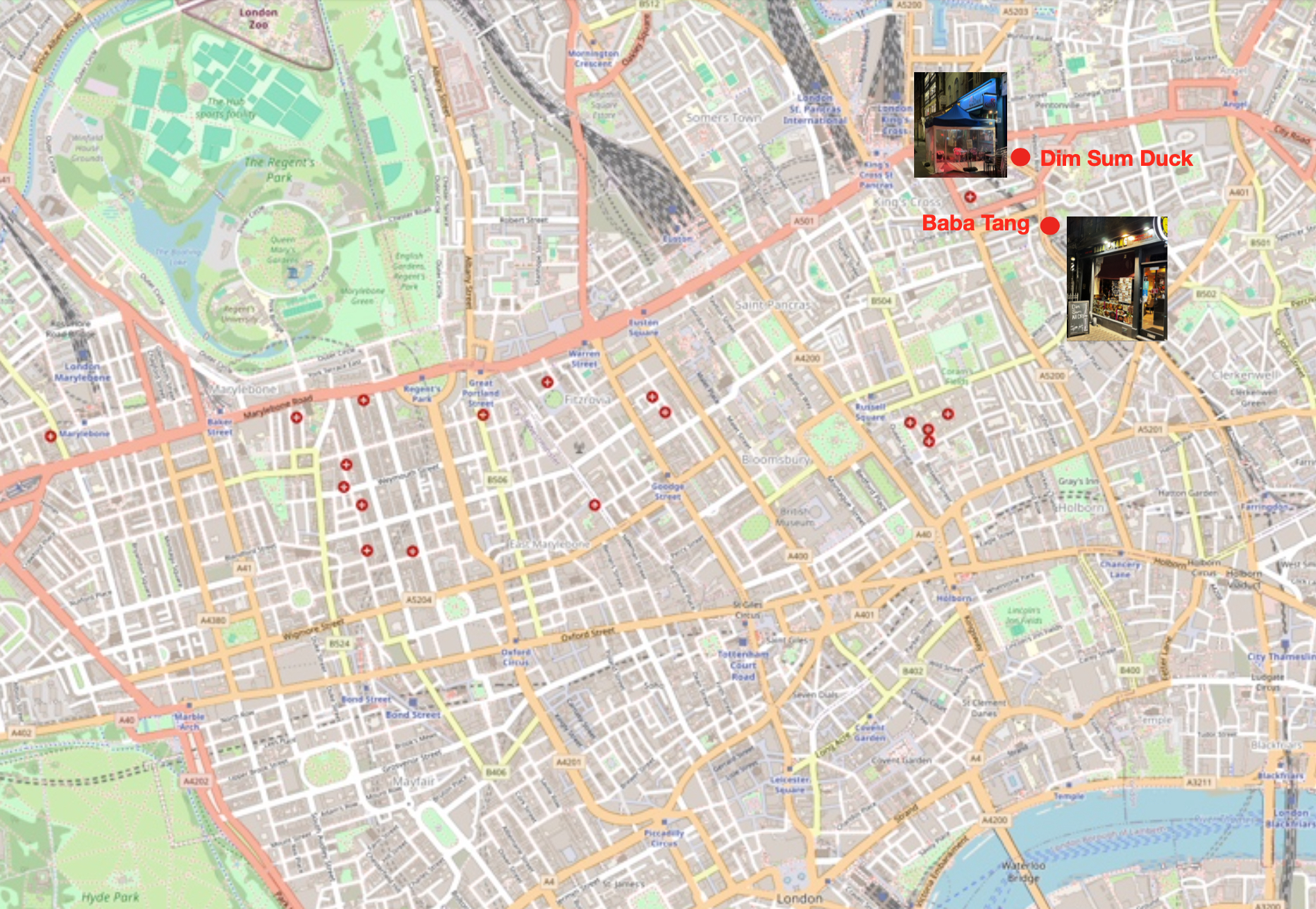 À l’est des grandes gares de Kings Cross/Saint-Pancras International, deux petits restaurants chinois tenus par des familles d’exception m’ont procuré de telles délices que je vous les présente. J’avoue que sans la revue Time Out, je ne m’y serais jamais aventuré. Les deux sont très petits au point qu’à Dim Sum Duck, il faut faire la queue au froid et accepter de manger dans une guérite à l’extérieur quand on est seul ! Ce sont des paradis pour les mets cuisinés à la vapeur dans l’esprit de la cuisine du sud de la Chine (Canton et Hong Kong).