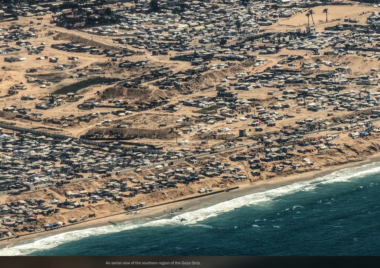 En y regardant de plus près, on voit comment vivent des centaines de milliers de Gazaouis, dans des tentes de fortune érigées partout où il y a de la place, y compris sur la plage au sud de Gaza.