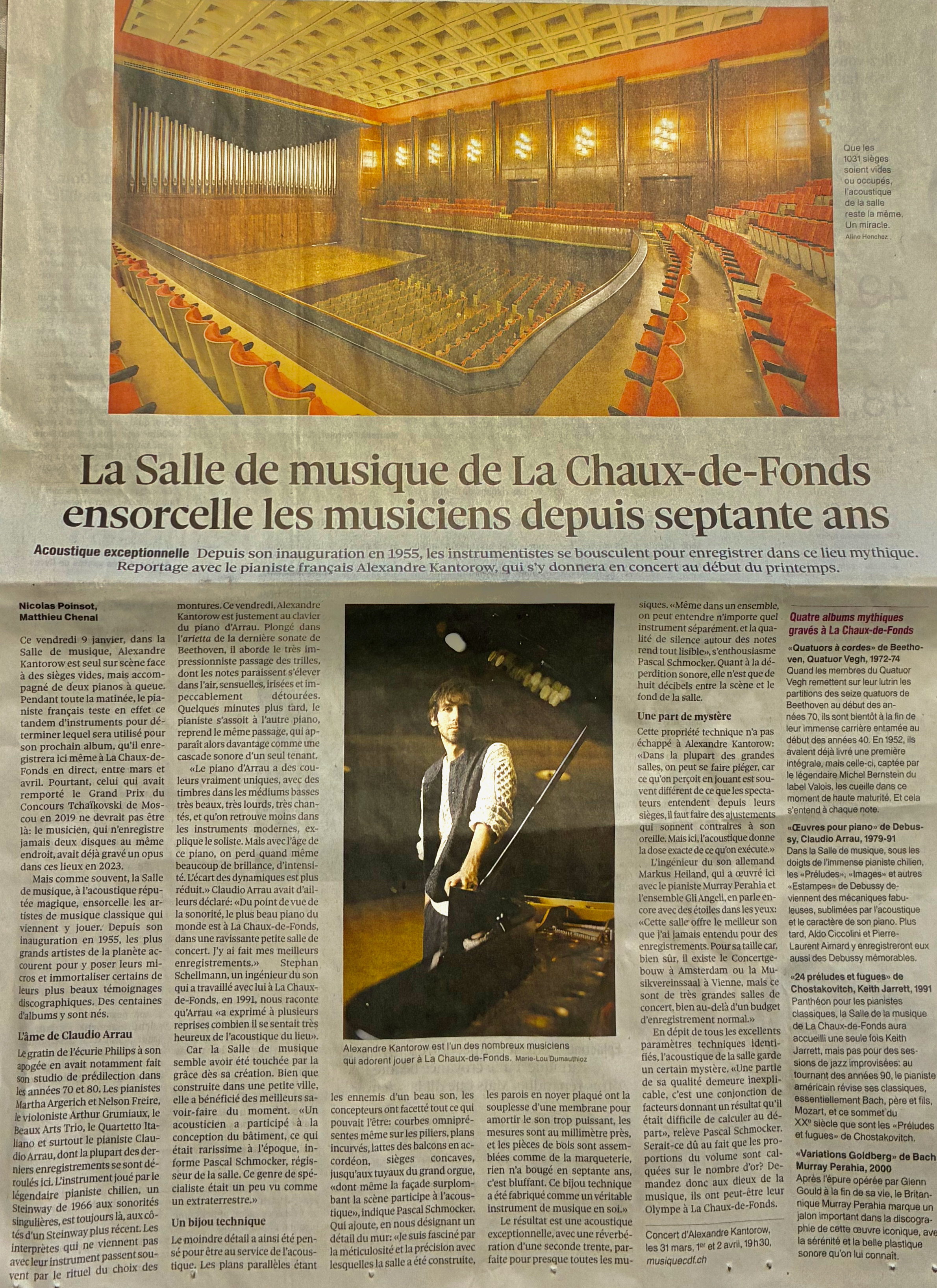 Notre salle de musique est très médiatisée en ce début 2026 car le grand pianiste Alexandre Kantorow va y enregistrer en public, fin mars, son prochain disque avec notamment la dernière sonate de Beethoven et les 24 Préludes de Chopin.
