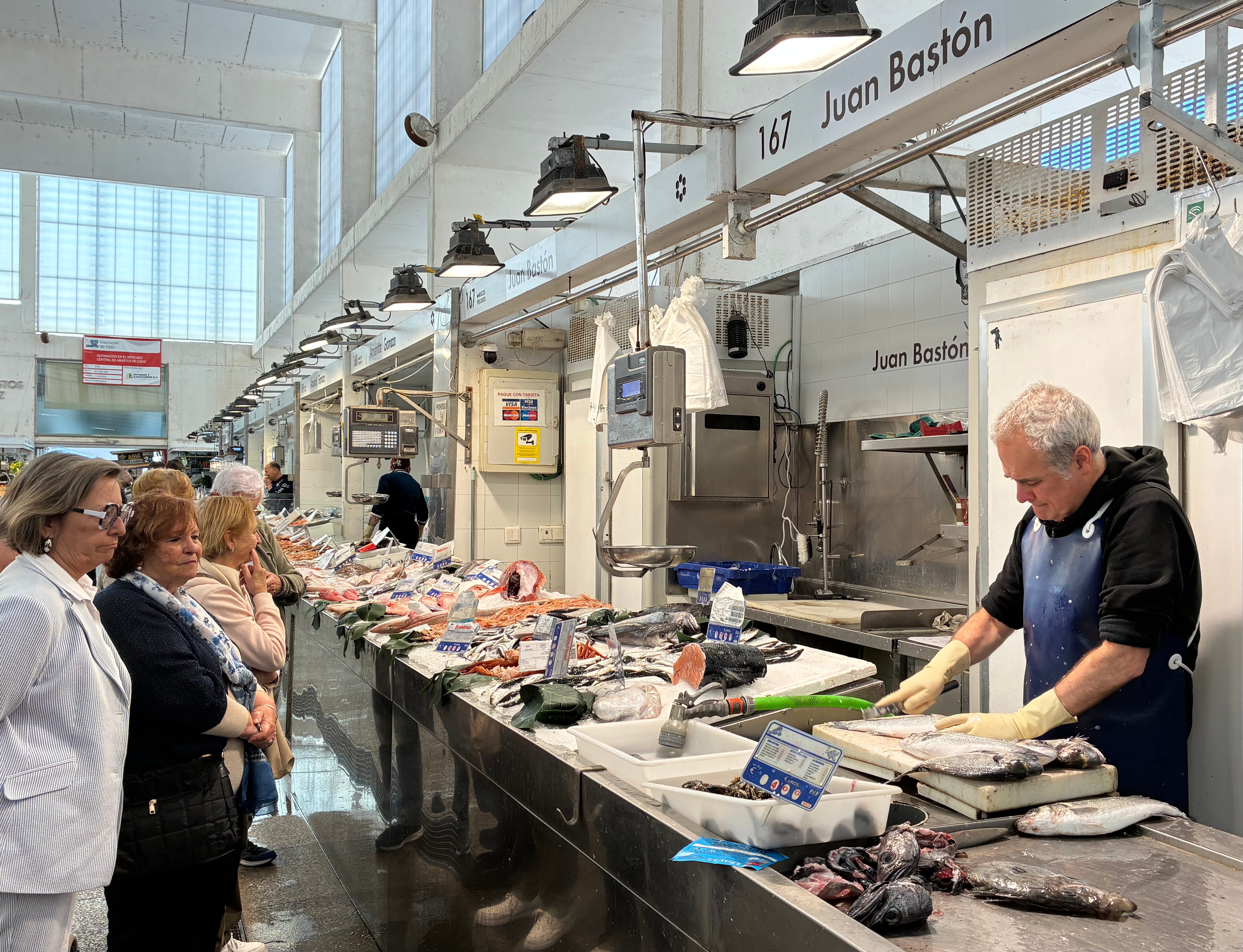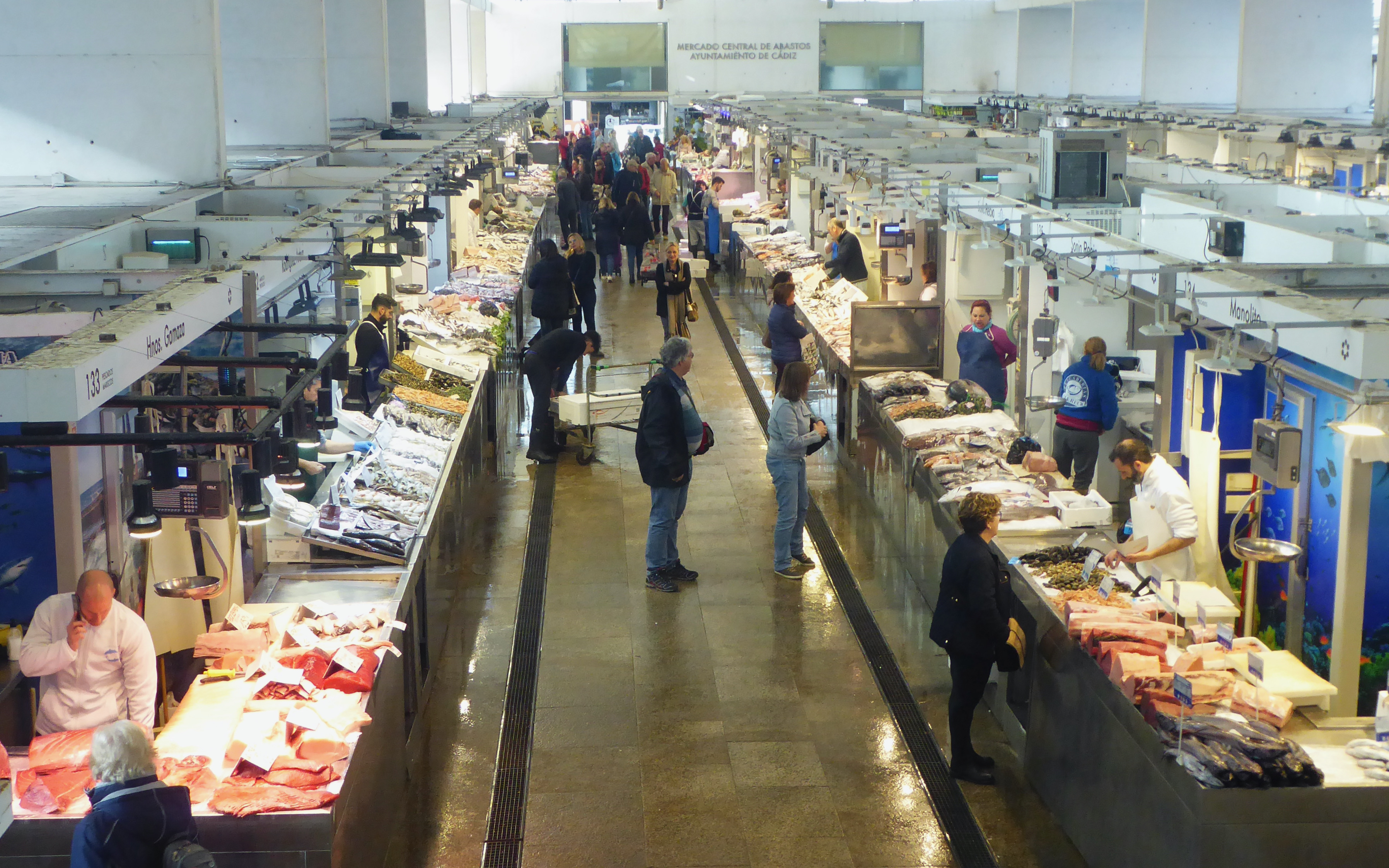Le marché couvert de Cádix est unique en Europe par la variété et la profusion de ses stands de poissons qui se trouvent à l’intérieur. Autour, d’innombrables autres stands de boucherie, de charcuterie, de conserves et de fruits et légumes. Les touristes de croisière s’y pressent dès 11 heures pour manger des tapas sous le regard bienveillant des serveurs ravis des bonnes affaires.