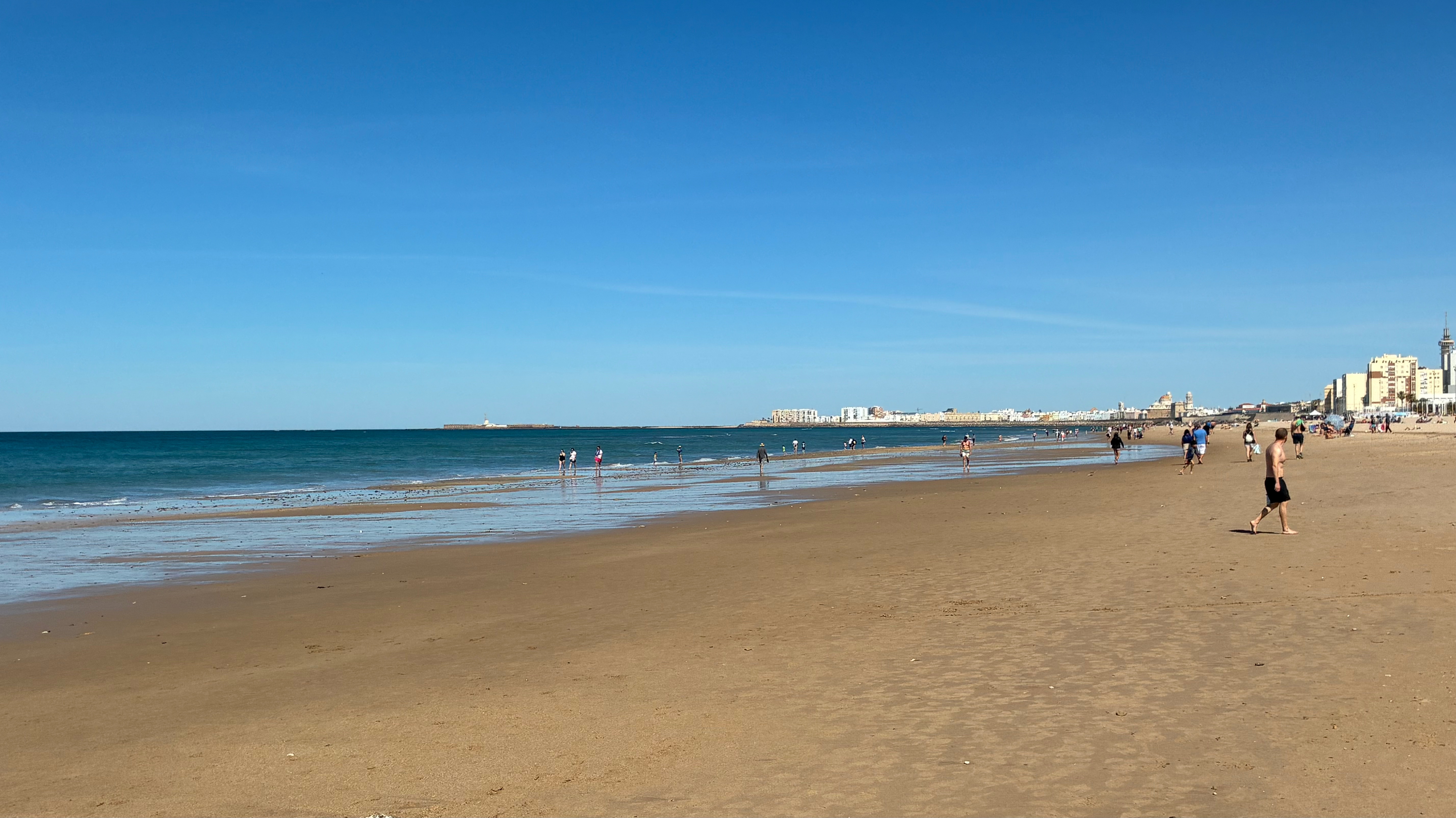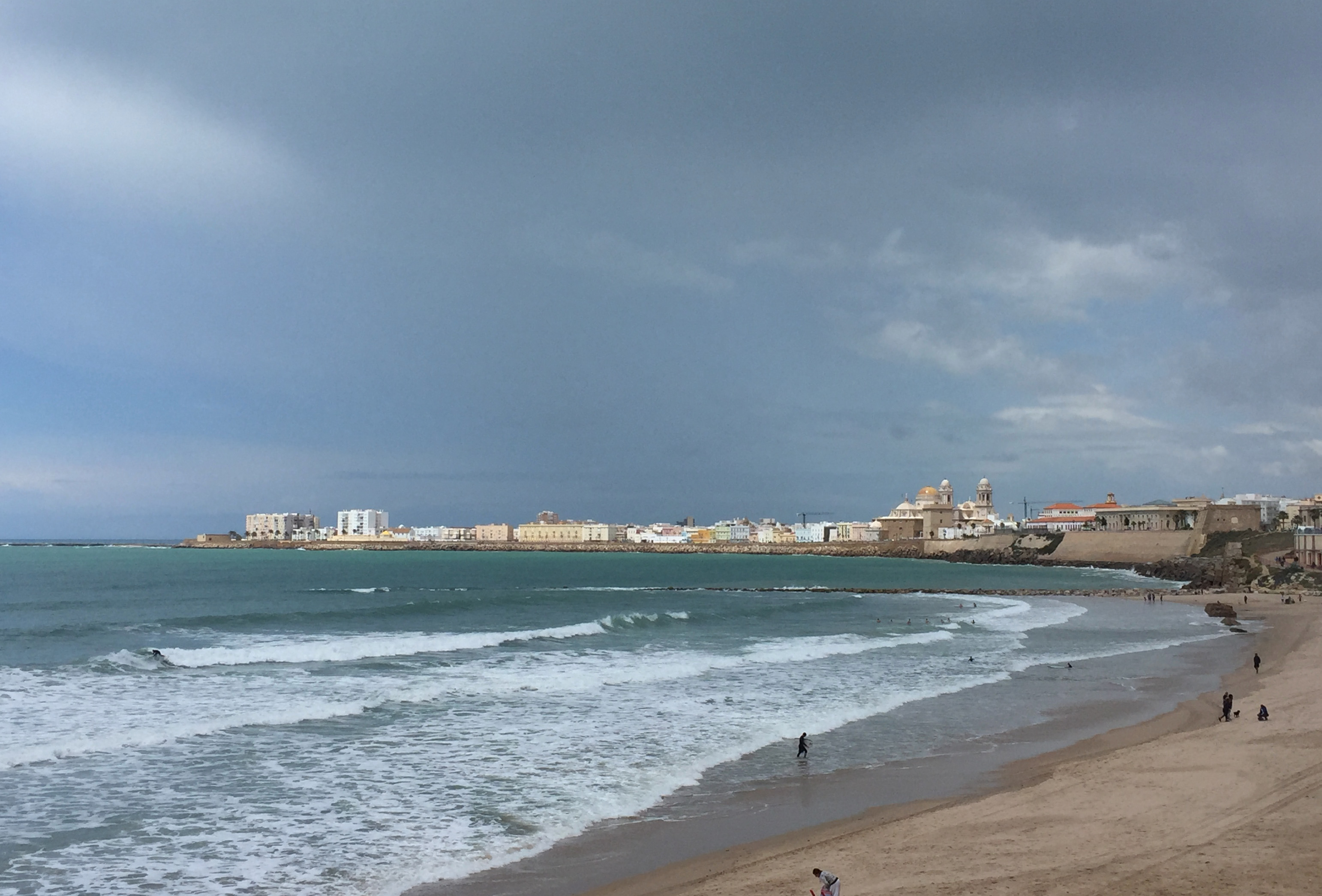 Les tentations bohèmes amèneront inévitablement le visiteur de Cádiz à longer l’immense plage de sable de plusieurs kilomètres. Il aura le choix de l’itinéraire selon le vent, souvent très fort. Ainsi, par vent d’est, on prendra le train de la gare centrale jusqu’au stade de foot (Estadio) et on marchera jusqu’au parc Genoves au bout de la cité allongée.