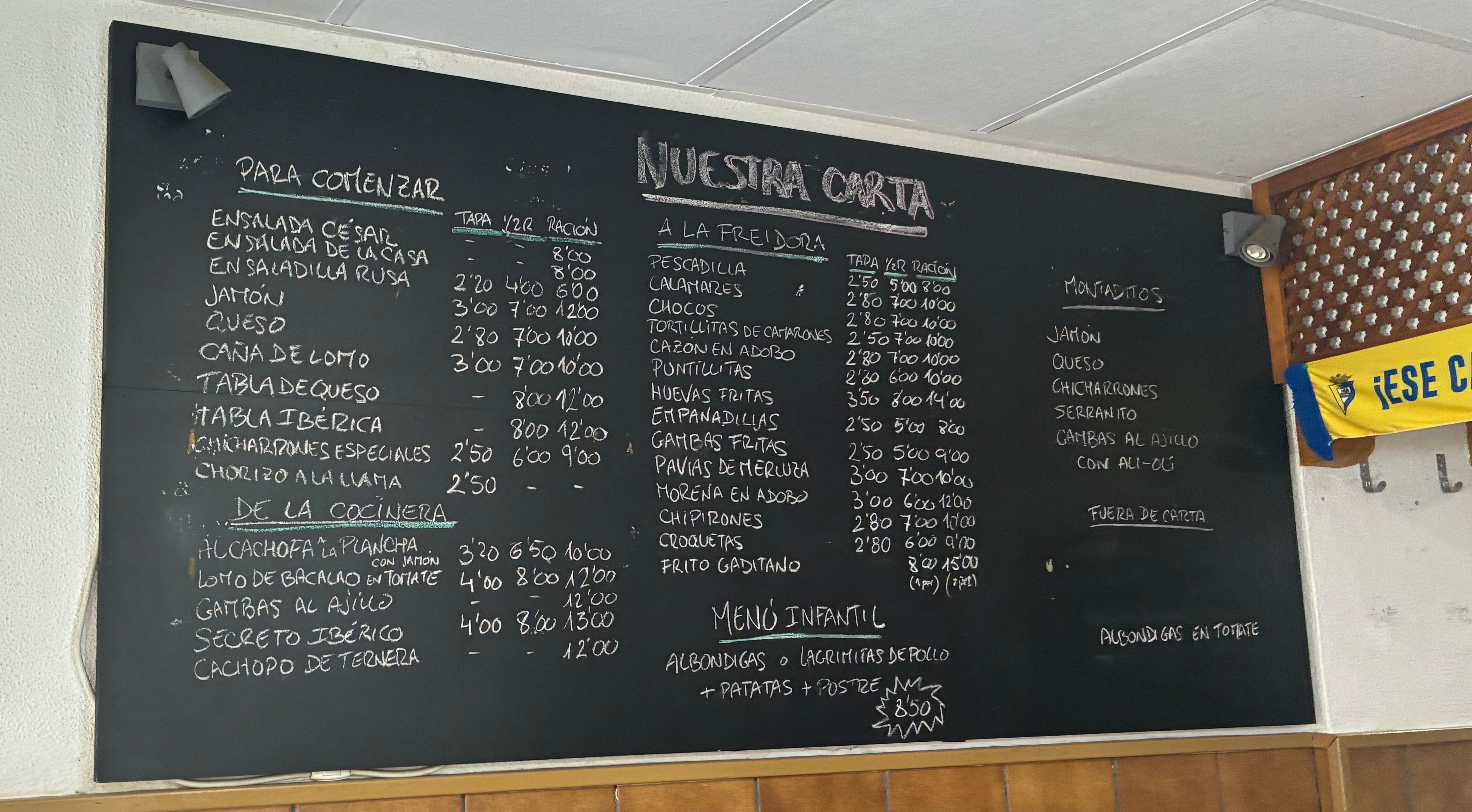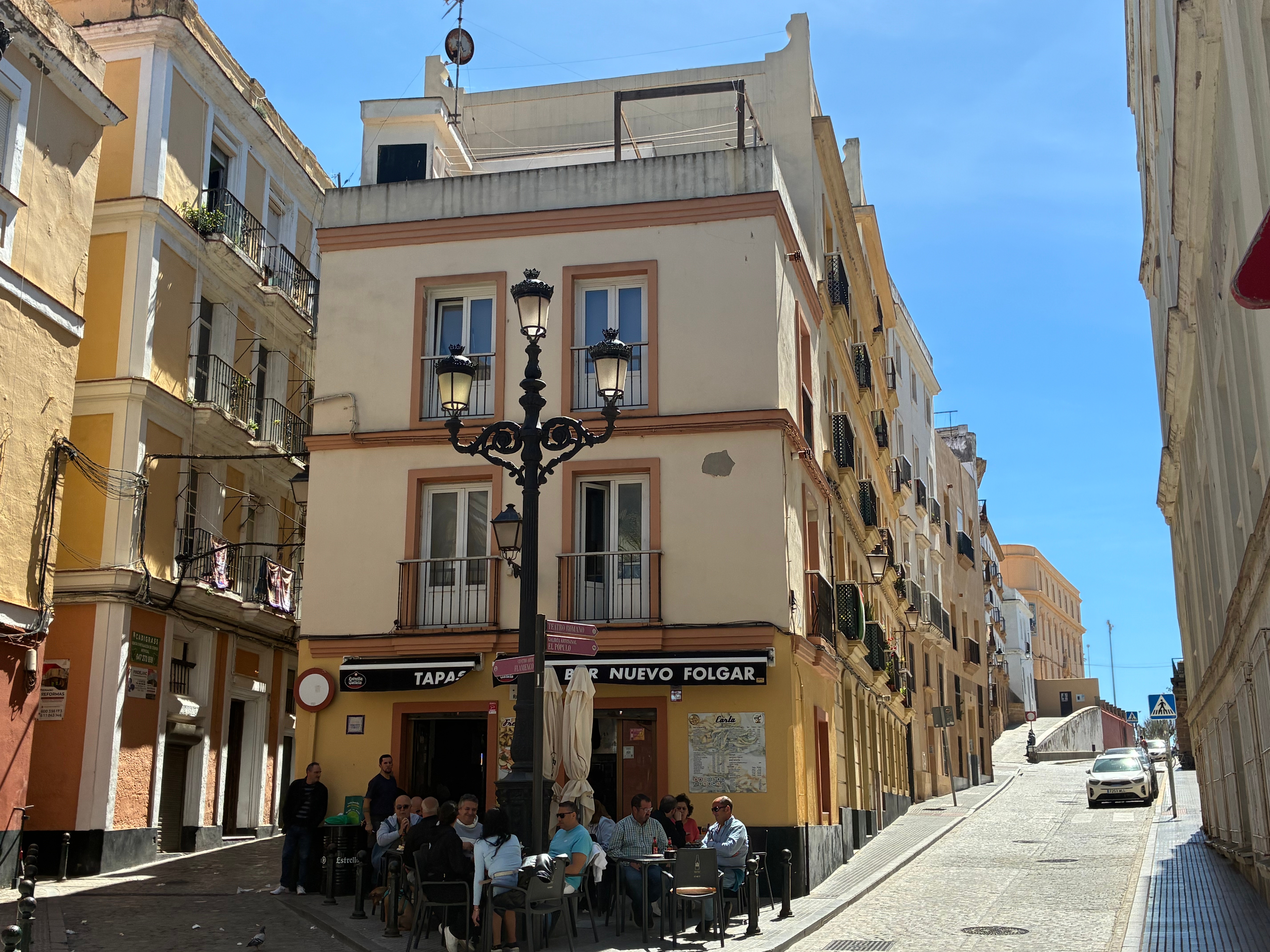 Ce bar-restaurant est situé au pied du quartier populaire de Santa Maria, lieu d’origine de nombreux musiciens et chanteurs flamenco. Au sommet de la rue qui part du bar, la calle Placio, on débouche sur la promenade de long de l’océan. Telle est Cádiz, aux innombrables ruelles étroites s’ouvrant sur le large : c’est une cité jamais étroite d’esprit.