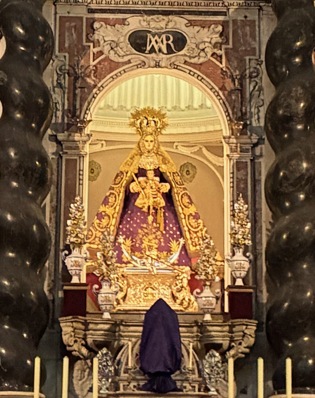 Cette statue sort dans une procession extraordinaire le jour de la Fête du Rosaire, chaque année le 8 octobre. Ce fut en 1997 la première procession religieuse que j’ai vue en Andalousie. Ce jour-là la tradition veut que des milliers de fleurs, des nardos, des sortes de tubéreuses originaires du Mexique, soit lancées et dispersées sur le paso portant la Vierge.